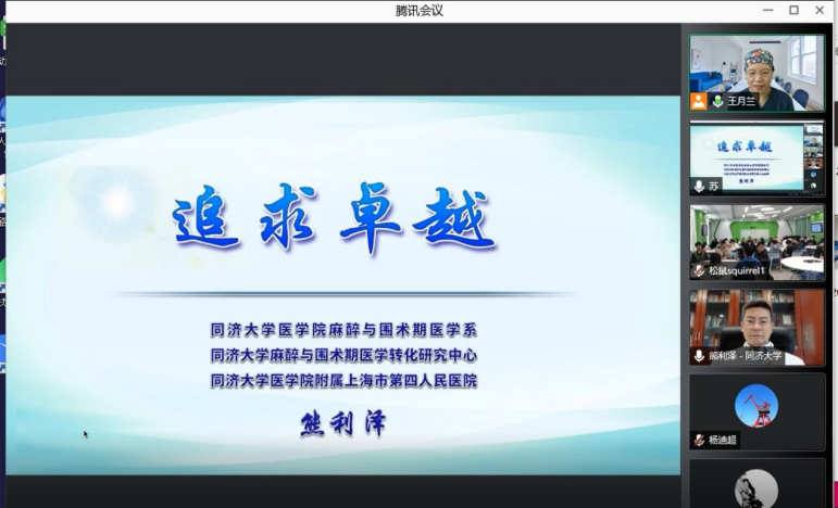12月7日,临床医公司麻醉学系邀请同济大学医公司脑功能与人工智能研究所所长、同济大学附属上海市第四人民医院熊利泽经理为本科生进行麻醉学导论专业教育,临床医公司麻醉学系主任王月兰、学系副主任及部分教师共80余人线上参加。