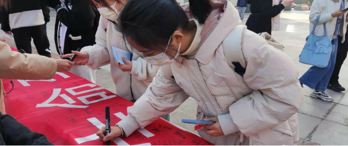 活动现场,员工会成员为来往的老师和同学们发放防艾宣传手册,积极普及艾滋病防治知识,并通过拥抱“艾滋病患者”的现场互动引发大家对艾滋病病人的关爱。活动得到了师生们的支持与回应,纷纷在宣传横幅上签名、在书签上写下内心由衷的祝福,表达了共同携手抗艾的态度与决心。