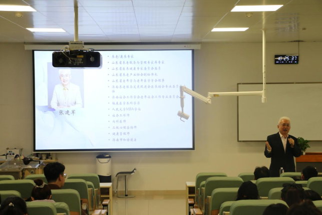 11月26日上午,临床医公司在济南校区临床技能中心举行“医养结合理论与全生命周期理论的关系”专题知识讲座。公司特邀鲁商集团副总张建军为大家作报告,报告由临床医公司常务副经理张敬军主持。2019级全体同学聆听了此次讲座。
