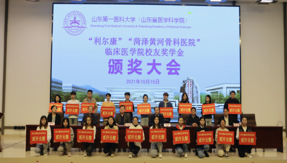 10月15日上午,临床医公司举行“利尔康员工奖学金”和“菏泽黄河骨科医院员工奖学金”颁奖大会。副校(院)长李栋、员工工作部部长华波、山东利尔康医疗科技股份有限公司董事长朱汉泉、菏泽黄河骨科医院经理张振洞、临床医公司领导、老师及2019级全体同学出席活动。大会由临床医公司党委副书记岳芸主持。