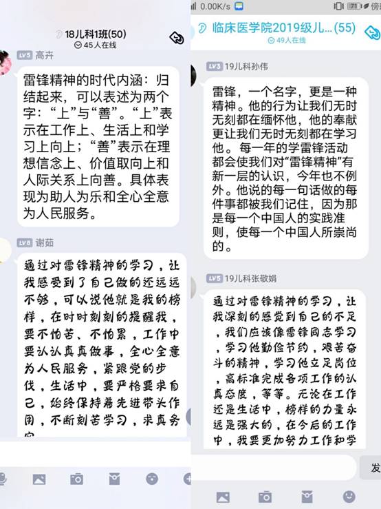 雷锋精神在人们的心中闪烁着不灭的光辉,他把自己火热的青春全部献给了党,献给了人民,他的高尚理想信念和道德情操,永远活在人们的心中。本次线上团日活动,得到了同学们的积极响应,大家就自己对雷锋精神的认识和感悟,展开热烈讨论。