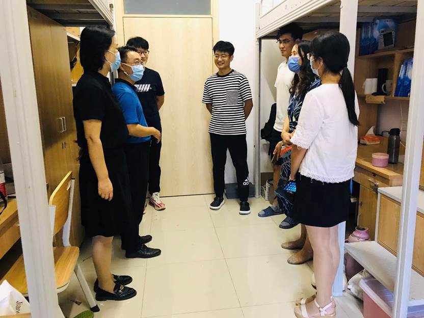 在员工宿舍,张海东亲切询问员工假期生活、学习情况,耐心听取同学们对新校区的感受和建议,希望大家认真备考、尽快适应新校区校园生活。叮嘱同学们加强疫情防控意识,注意宿舍的环境卫生和消毒通风,尽量不要外出校园,减少人员密集,提高安全意识,做好个人防护。