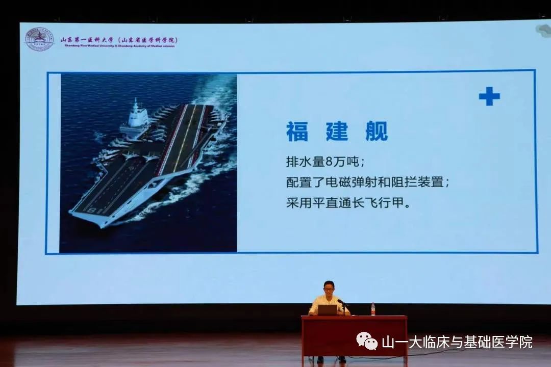 院(所)辅导员杨兴廷在大会上宣讲毕业生参军入伍政策,他以近日下水的我国完全自主设计建造的首艘弹射型航空母舰福建舰为切入点,指出我国的国防力量仍需要大批高质量人才,并鼓励本科毕业生投身军营,淬炼青春。