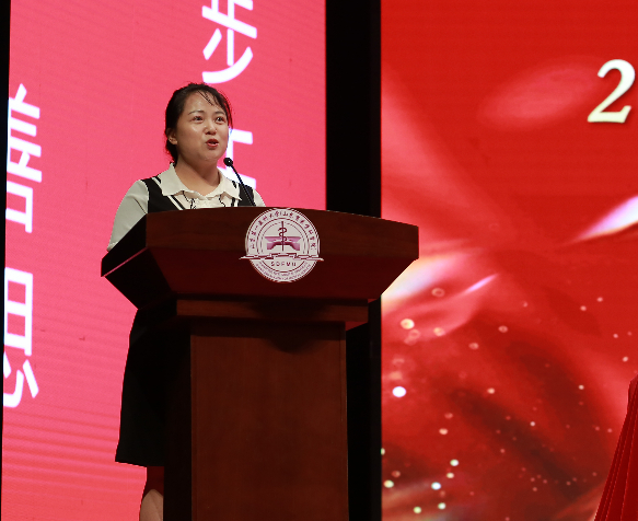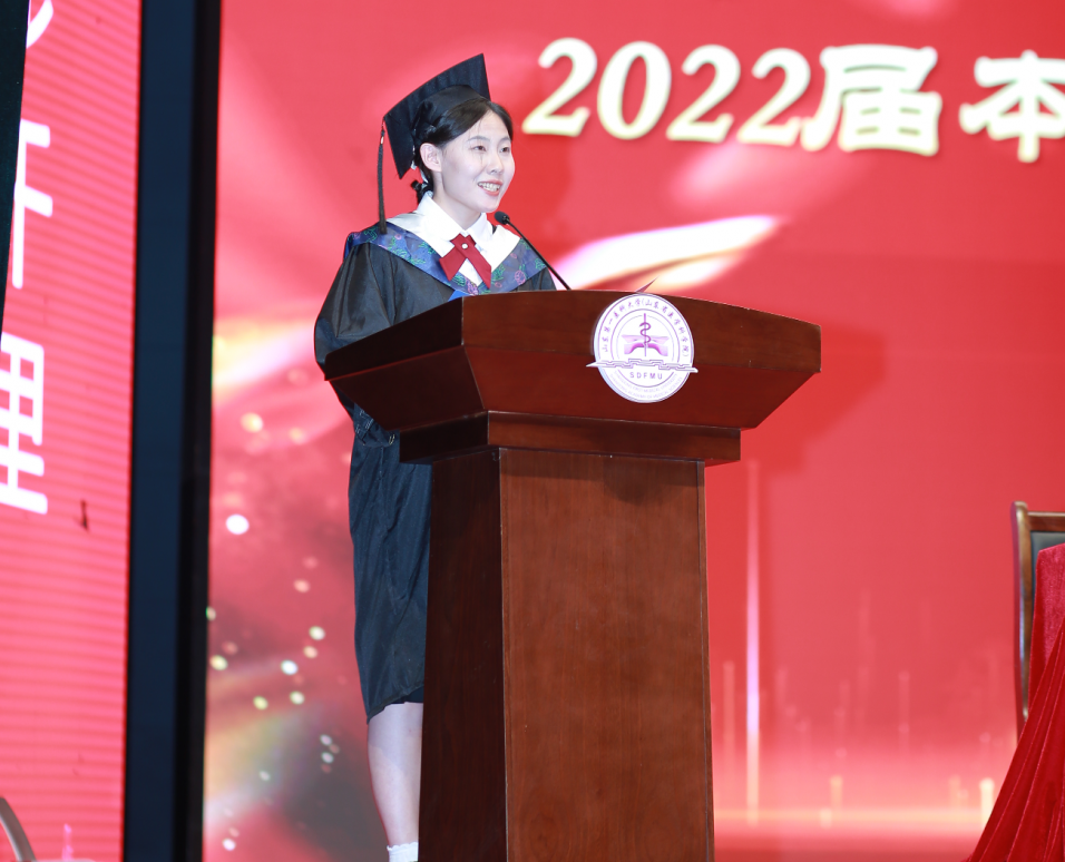 教师代表杨瑞瑞老师和毕业生代表崔珂相继发言。杨瑞瑞老师以一颗师者的拳拳之心,在临别赠言中谆谆教诲,殷殷嘱托,鼓励同学们直面困境,自强不息、勇往直前、顽强拼搏、奋勇争先,做一颗经历了千万磨难,最终被雕刻成佛的石头。崔珂同学代表2022届全体毕业生向母校、向师长表达深深的敬意和感恩,并表示今后将不畏艰难,谨遵校训,去投身社会,服务社会,奉献青春,实现自我。