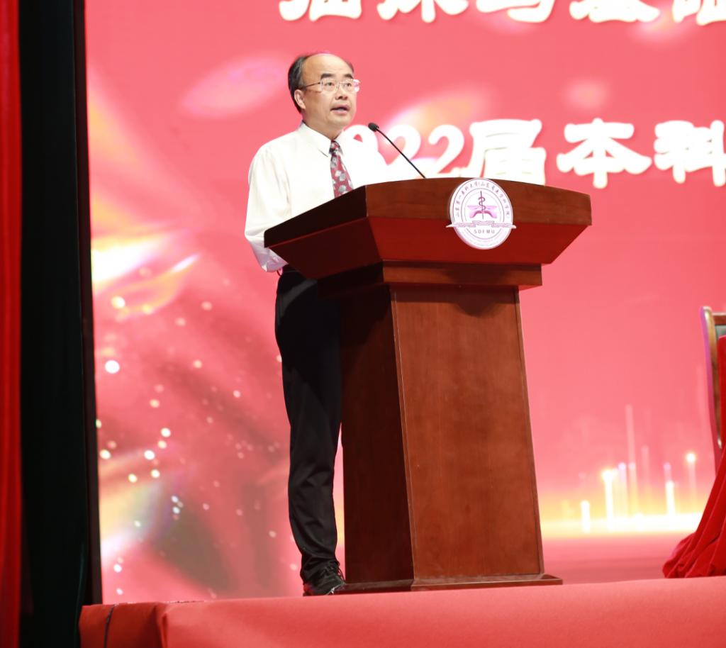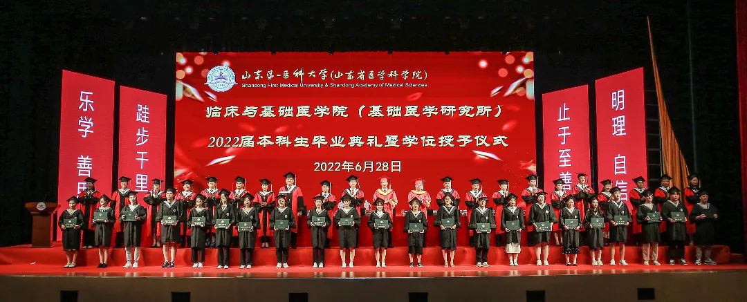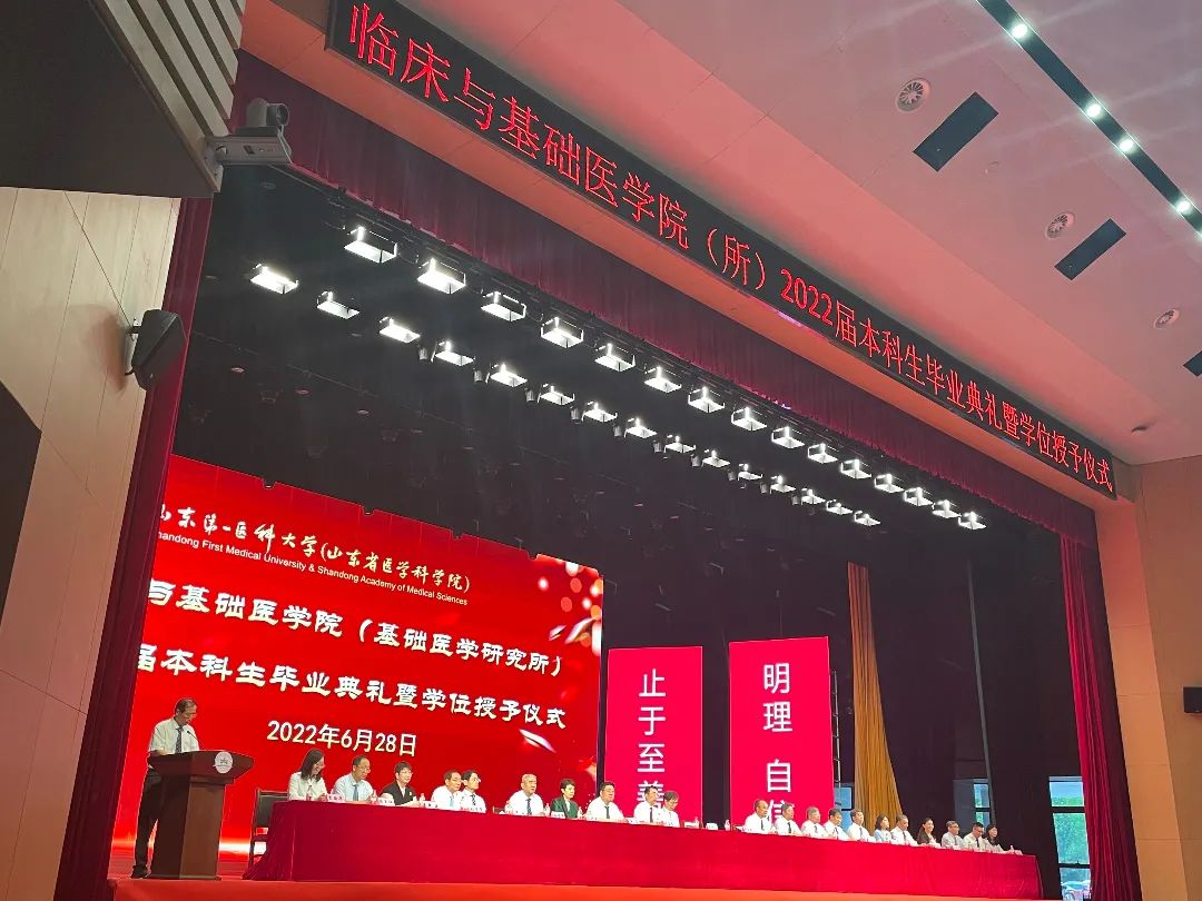 时光流转,岁月如梭,又到了毕业送别的时刻。6月28日下午,2022届本科生毕业典礼在济南主校区老员工活动中心隆重举行。校(院)党委书记韩金祥、副校(院)长刘传勇,校(院)党委办公室、员工工作部、教务部、医院管理与疾病控制部等部门负责人以及院(所)班子成员出席。附属省立医院(山东省立医院)、第一附属医院(山东省千佛山医院)、第二附属医院、第三附属医院北院区(济南市第四人民医院)、附属中心医院(济南市中心医院)、附属济南人民医院(济南市人民医院)、泰安市中心医院等医院领导受邀出席典礼。