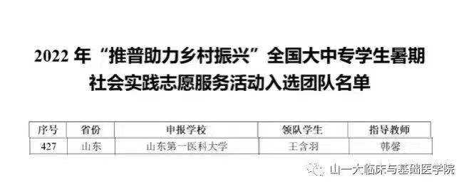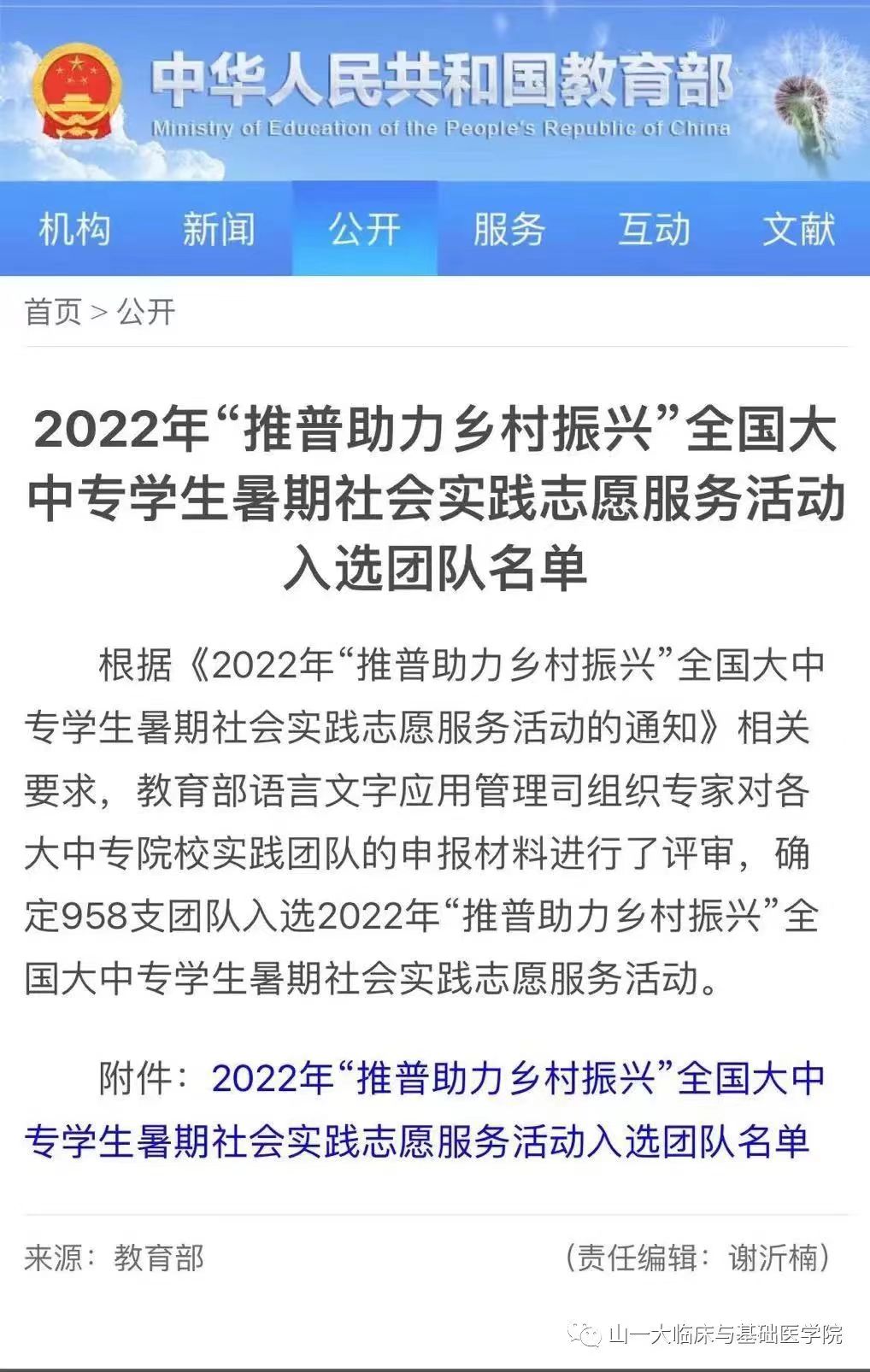 7月6日,三亿体育官网(院)团委、三亿体育选送的“泰山爱心支教团”成功入选教育部发布的《2022年“推普助力乡村振兴”全国大中专员工暑期社会实践志愿服务活动入选团队名单》。