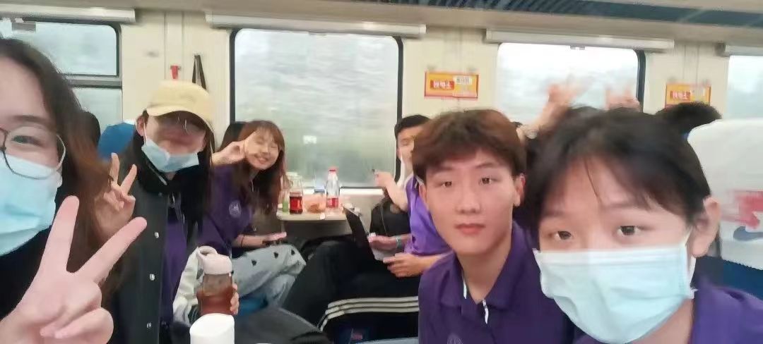 午餐过后,窗外的景色愈发好看,渐渐有了高原的味道,阳光强烈,水波温柔。暖阳斜射入车厢,散落在脸庞。火车摇曳着前行,我们不禁困意涌上心头。由于车厢空间有限,行李繁多,睡觉这一易事便也考究起来。多米诺骨牌式连躺,卧桌式,后仰式,尽是同学们智慧的结晶。同学们放下了形象的包袱,性别的戒备,一切行为都是如此的简单高效、自然大方。