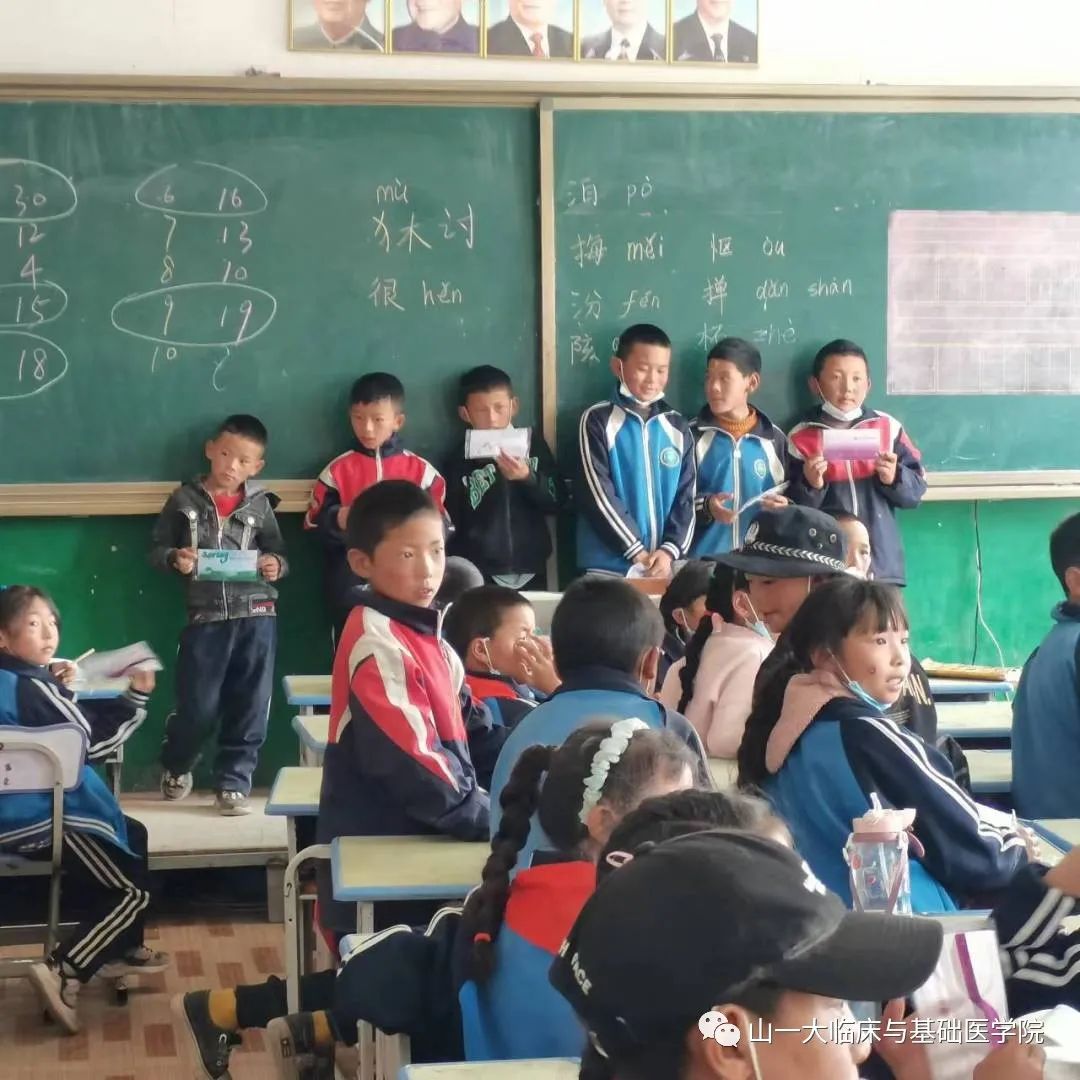 课间,孩子们围在我身旁,不停地发问:老师你是老员工吗?山东在哪里呀,那里有格桑花吗?山一大是什么样子呢?学医好玩吗?如果我每次都考了100分,就可以当医生了吗......