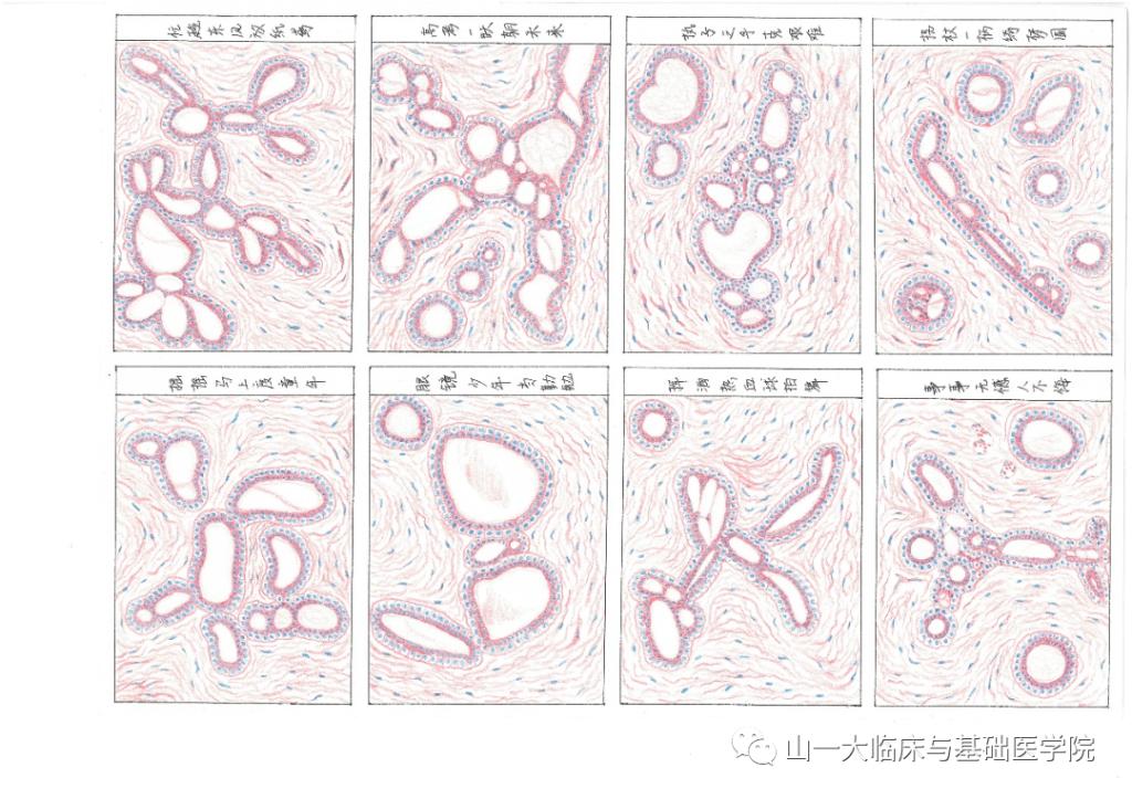 本作品为原创作品,以乳腺纤维腺瘤为描绘对象,通过对光镜下组织的仔细观察及艺术性联想,绘制8幅肿瘤组织,以生动的形状一一映照人生八阶段,并创作小诗总结。“人生的道路虽然漫长,但紧要处常常只有几步,特别是当人年轻的时候。”诚然,此良性肿瘤好发于青年女性,但请放心、耐心。它不会影响精彩的生活,也请在短暂歇息后,不要停下砥砺前行的脚步。