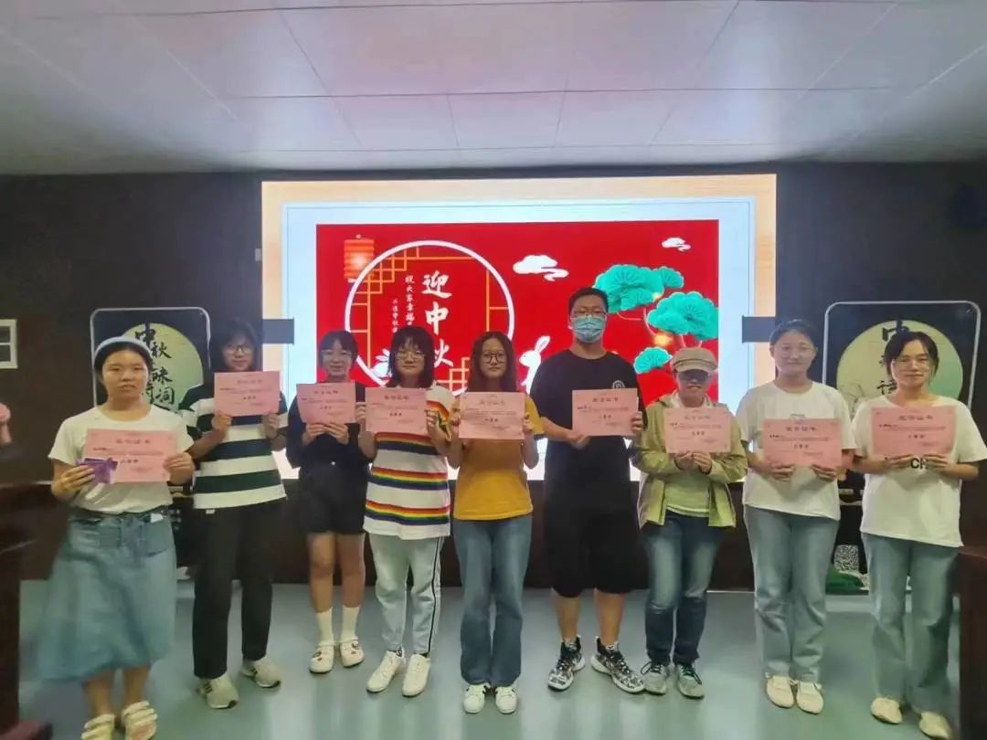 乐知书社为获奖同学准备了精美奖品和奖状,并送上真挚的中秋祝福,合影留念。