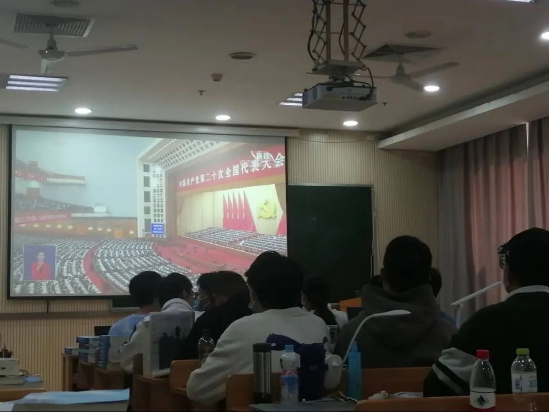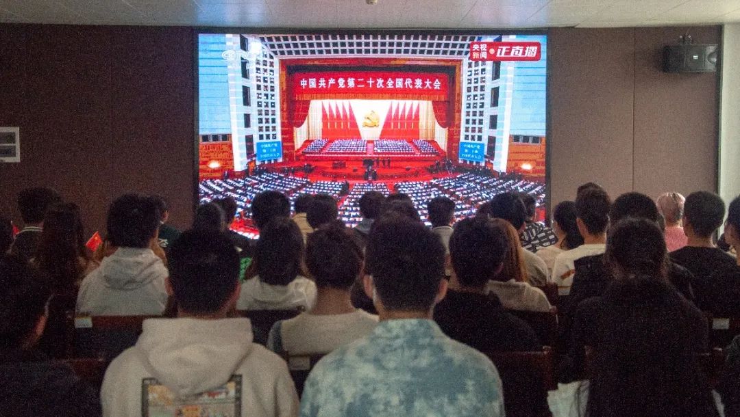 三亿体育积极组织院(所)全体在校员工会干部、员工党员、预备党员100余人于医学楼C“医心医意”实践育人辅导员工作室“红色放映厅”集中观看党的二十大开幕会盛况,同时全体见习、实习员工党员以及全院(所)入党积极分子线上观看。全体思想政治辅导员共同观看开幕会。
