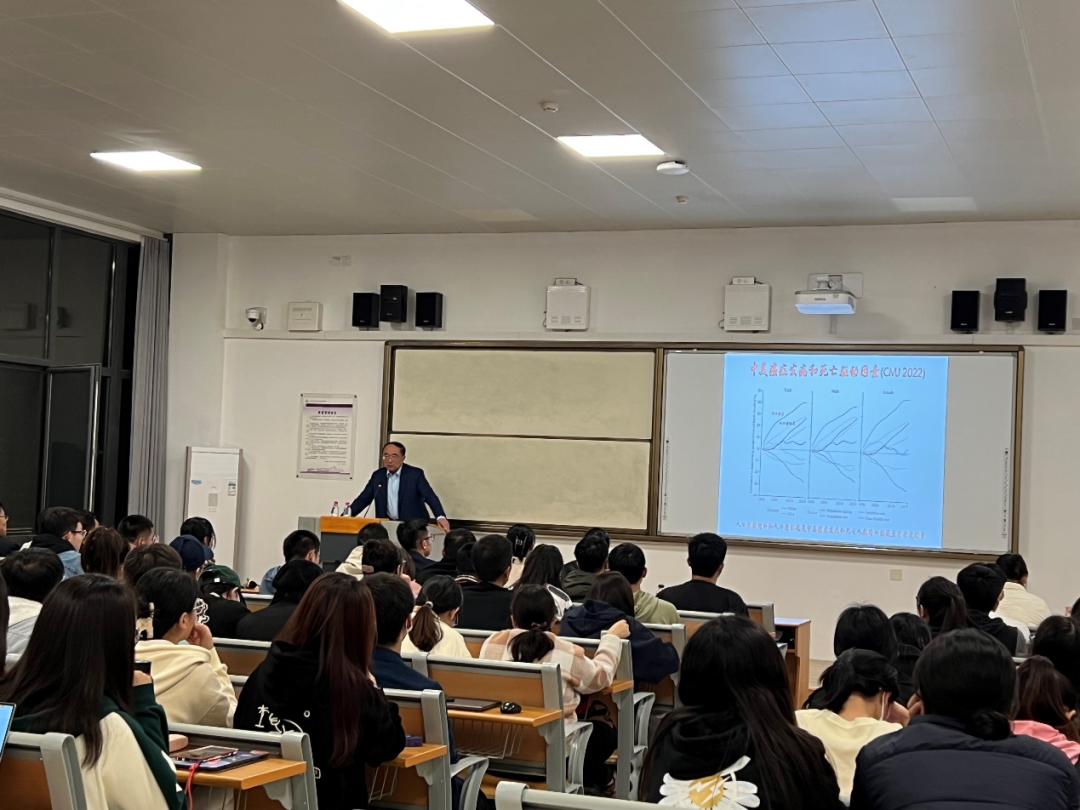 于金明院士做了题为《精准肿瘤学新实践》的专题讲座,他分别从肿瘤的流行病学、病因学、筛查及早期诊断、治疗策略及进展、预防等方面,向同学们介绍了精准肿瘤学的最新实践。院士循序渐进地讲述了肿瘤学的演变历程和现状,全球肿瘤疾病负担重且中国堪忧,肿瘤仍是严重危害健康的疾病。肿瘤的治疗经历了三次变革,新时代肿瘤治疗的热点是精准,精准治疗不是“盲人摸象”,而是多学科、多专业、多领域的交叉融合,是未来的方向与愿景。于院士的讲座运用深入简出的语言,为同学们梳理出了清晰的肿瘤学新进展框架,开阔了同学们的视野并激发了其对肿瘤学的兴趣,为同学们在肿瘤学的研究和发展指明了方向。同时于院士也让同学们领略到,作为医学领军人物的格局和人格魅力,激励同学们在医学道路上砥砺前行。