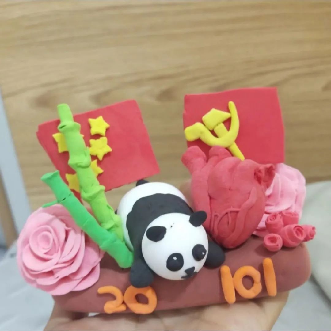 心中的热爱自是流露,行动的付出亦是可贵。医员工们将所学知识用粘土和肥皂一点点塑形雕刻,凝聚出对党和祖国一点一滴的追寻,将医员工的创意构思转化为生动形象的立体创造,活学活用。