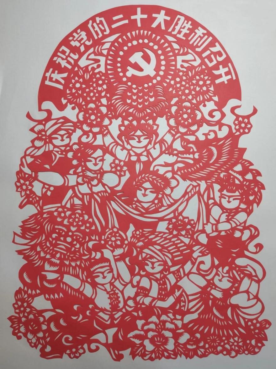 同学们积极响应号召,将对祖国的祝福刻成一幅幅美丽的画纸。作品的内容各不相同,但却共同赞颂着盛世中华,剪出了每个人心中时代的赞诗。