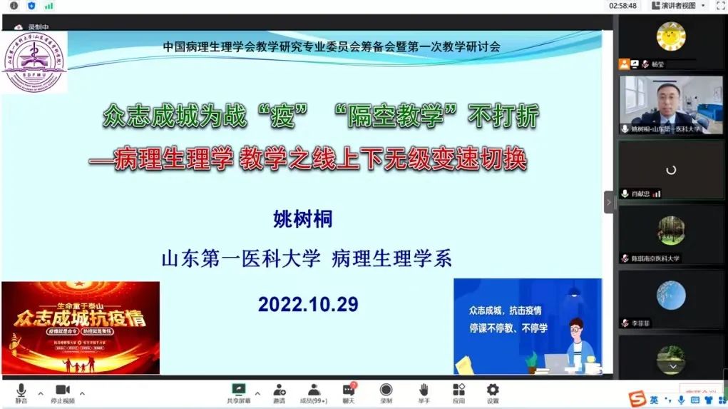 2022年10月28-29日,在吴立玲教授、王建枝教授、陈琪教授、肖献忠教授等老一辈病理生理学家的大力倡导和中国病理生理学会的大力支持下,中国病理生理学会教学研究专业委员会筹备会暨第一次教学研讨会顺利召开,本次会议由中国病理生理学会教学研究专业委员会(筹)主办,华中科技大学、北京大学、南京医科大学、中南大学承办。公司三亿体育病理生理学系主任姚树桐教授当选第一届教学研究专业委员会委员并作大会主题报告,病理生理学系10位教师成为会员并参加了大会。