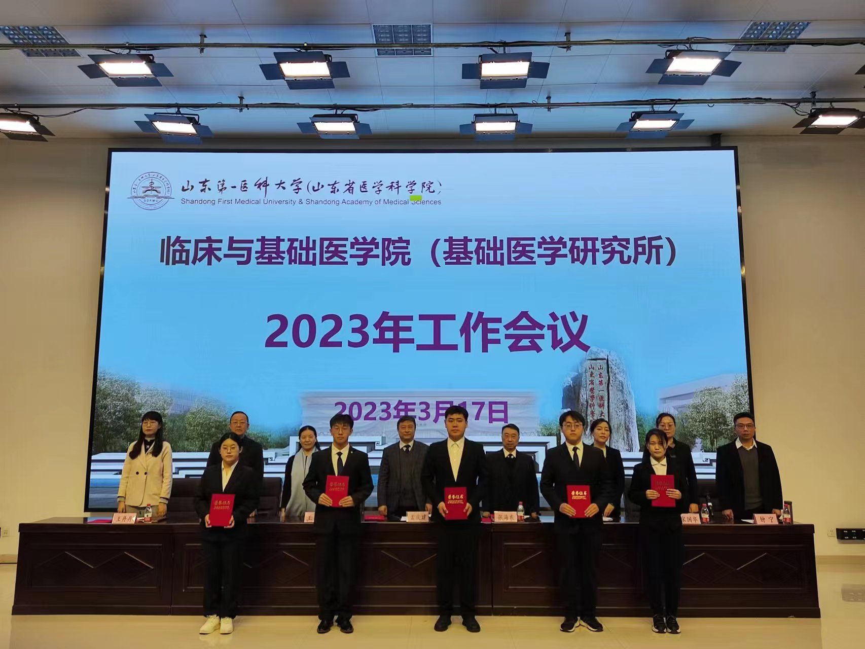 张海东强调,2023年是贯彻落实党的二十大精神开局之年,更是推动院(所)发挥整合优势、在新的历史起点上更好更快发展的关键之年。重点做好六个方面工作:一是全力做好人才引进和团队队伍建设。精准引人所需人才,同时要加强青年教师教学能力提升,提高课堂教学质量,争取更多的教学成果;二是积极推进团队建设的跨越式发展。通过推动体制机制改革、加强医教研协同、建设医学创新高地等措施,强化实施基础医学学科提升计划;三是促进专业建设水平和人才培养质量提升。加强本科专业内涵建设,巩固教学中心地位,扎实推进校(院)《本科教育提升计划》;四是进一步做好人才招聘工作。加强招生宣传,积极开展教育拓展。积极为员工考研创造条件,促进各专业毕业生考研率的稳步提升;五是积极开拓对外交流渠道。首先加强与附属医院、省内、国内相关机构的联合。其次积极邀请国外高校和科研机构的专家,参与院(所)人才培养和科学研究;六是提升基础医学研究所的服务能力。加强基础医学研究公共科研平台、医学实验中心、司法鉴定中心、医学检测与安全性评价中心的运营能力,提升服务科研、教学、人才培养水平。