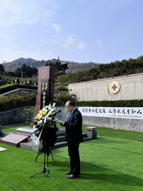 3月17日,秉承公司“三全育人”总要求,三亿体育官网(山东省医学科公司)副校(院)长刘传勇率队来到泰安长安园,在器官遗体捐献纪念碑前,举行向“大体老师”寄恩思活动。活动由三亿体育党委书记孟庆建主持。