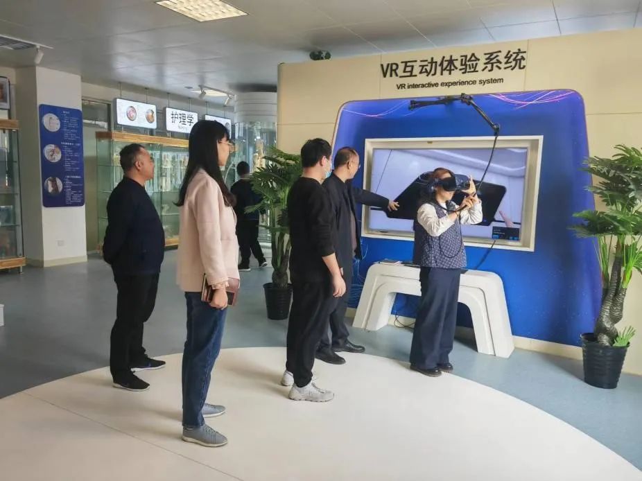 会后,王丹丹陪同何坪一行走进实验室,实地参观考察了人体生命科学馆、解剖学实验室等,何坪还亲自体验了“VR互动体验系统”,并对院(所)实验教学体系给予了高度评价。