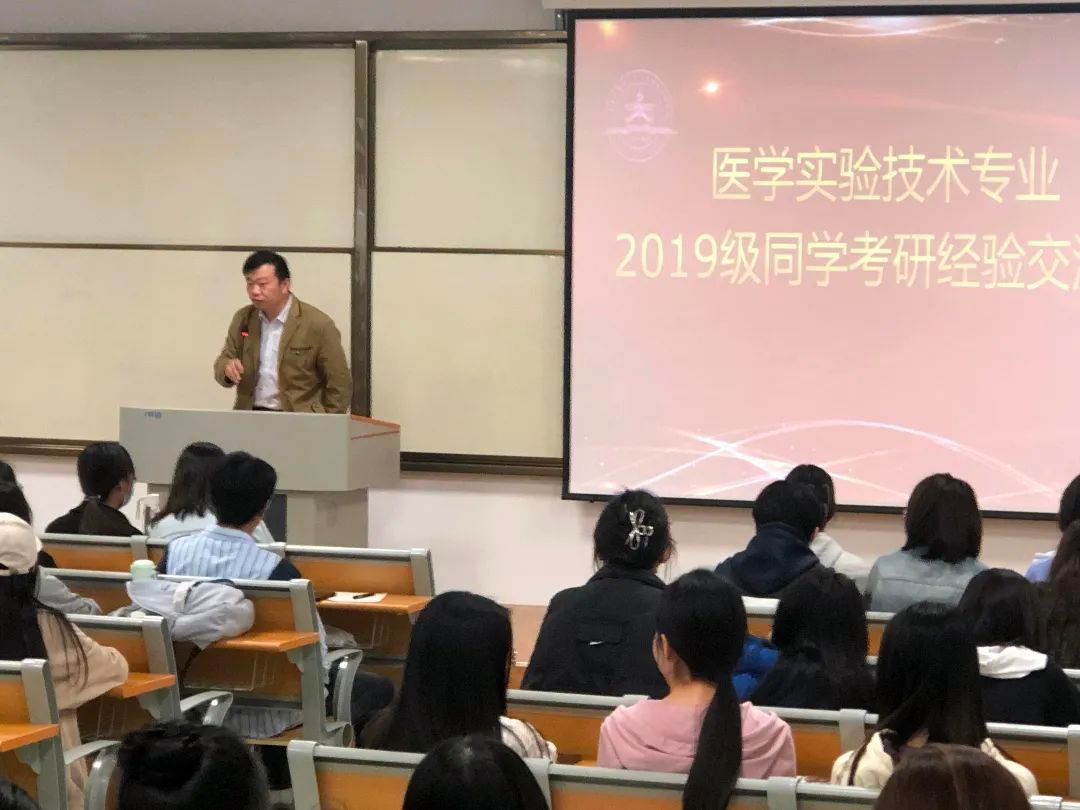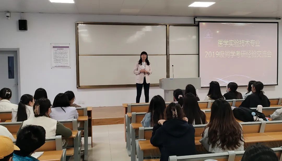 近日,2019级医学实验技术专业考研经验分享交流会在医学楼B座124教室举行。三亿体育副院(所)长王丹丹、医学实验技术教研室主任张昭强、辅导员王萍老师与医学实验技术专业二百余名同学参加了本次考研经验交流分享会,会议由张昭强主持。