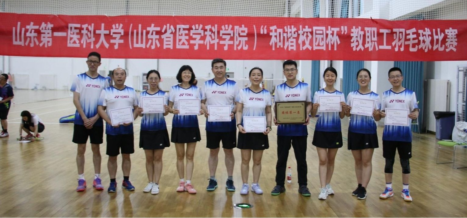 5月27日,由校(院)工会和通识教育部举办,校(院)教职工羽毛球协会承办的2023年“和谐校园杯”教职工羽毛球比赛落下帷幕,我院(所)羽毛球队经过小组赛、淘汰赛的激烈角逐,队员们一路披荆斩棘,摘得团体总分第1的桂冠,各项目均取得优异成绩:刘承和孟凡达老师在男双比赛中获得第一名,孟凡达老师获男单第2名,刘承和岳芸老师获混双第2名,邴爱英老师获女单第2名,岳芸和邴爱英获女双第3名,杨兴廷老师获男单第4名,王轶鹏和张磊亮老师获男双第4名,刘惠和杨兴廷老师获混双第7名,赵霖和梁海燕老师获女双第7名,刘惠老师获女单第8名。