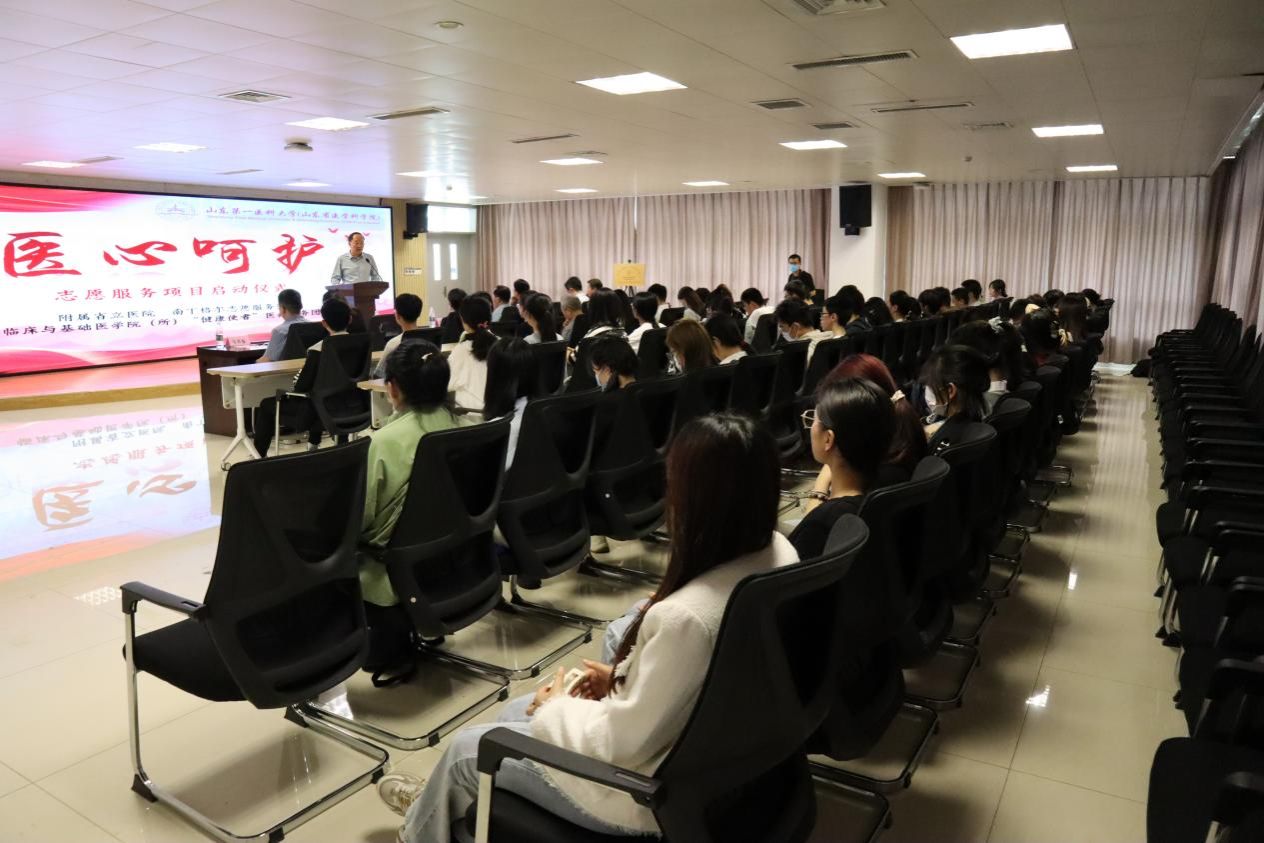 启动仪式上,李栋为“医心呵护”志愿服务项目颁发指导教师聘书并授牌。校(院)团委负责同志介绍了校(院)志愿服务开展情况,附属省立医院护理部负责同志介绍了医院南丁格尔志愿服务队基本情况,员工志愿者代表作了表态发言。