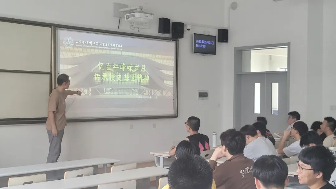 班会最后,各班班长及辅导员老师带领同学们观看《泰山作证》、《成势·蝶变》、《灭风者》等影片,让同学们进一步了解校(院)的发展历史,校(院)为山东省夺取新中国灭病史上的“四连冠”立下的不朽“功勋”以及科教融合以来取得的成绩,进一步增强同学们荣校、爱校的集体观念,提升同学们对公司的归属感和认同感。