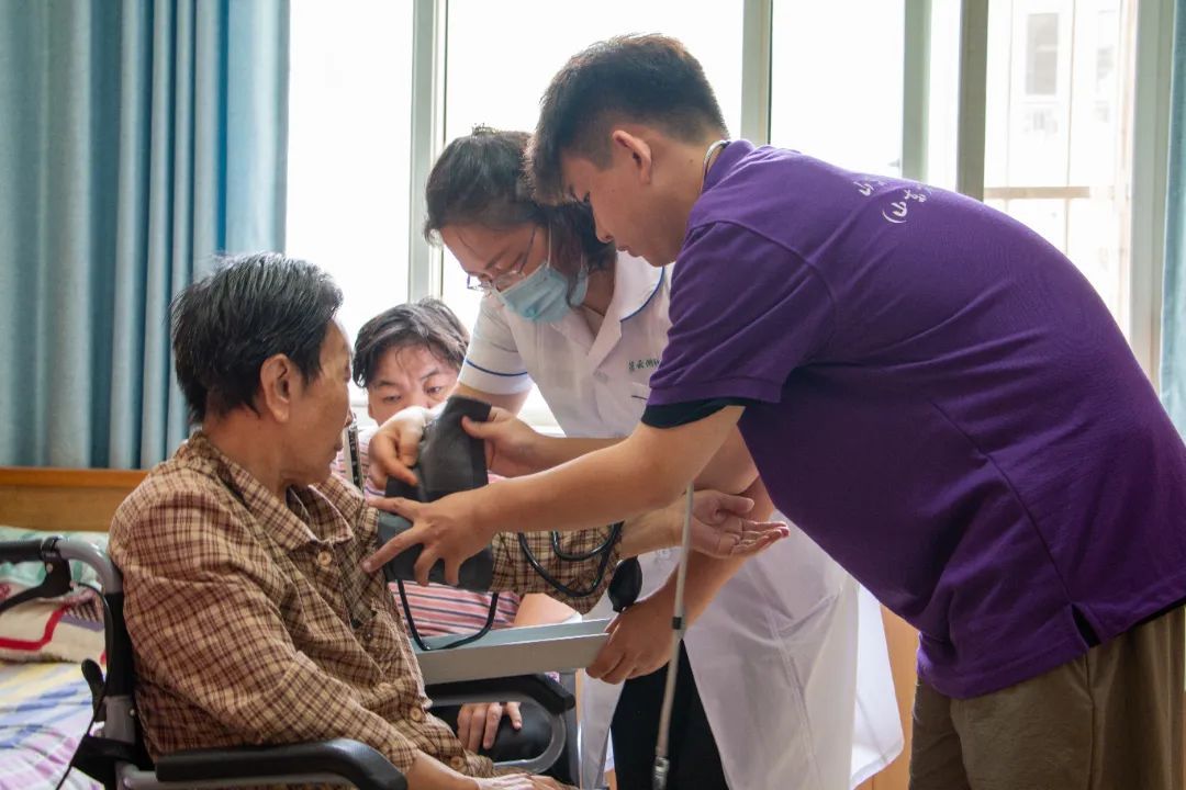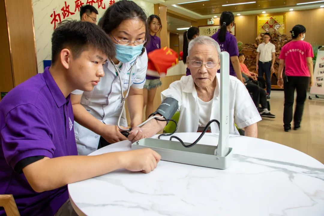 服务团成员通过发放宣传手册、调查问卷、现场讲解等方式,对居民关心的健康养生、饮食保健、生活习惯等方面的知识进行科普,并协助社区卫生中心工作人员为患者进行免费血压测量及健康问诊。