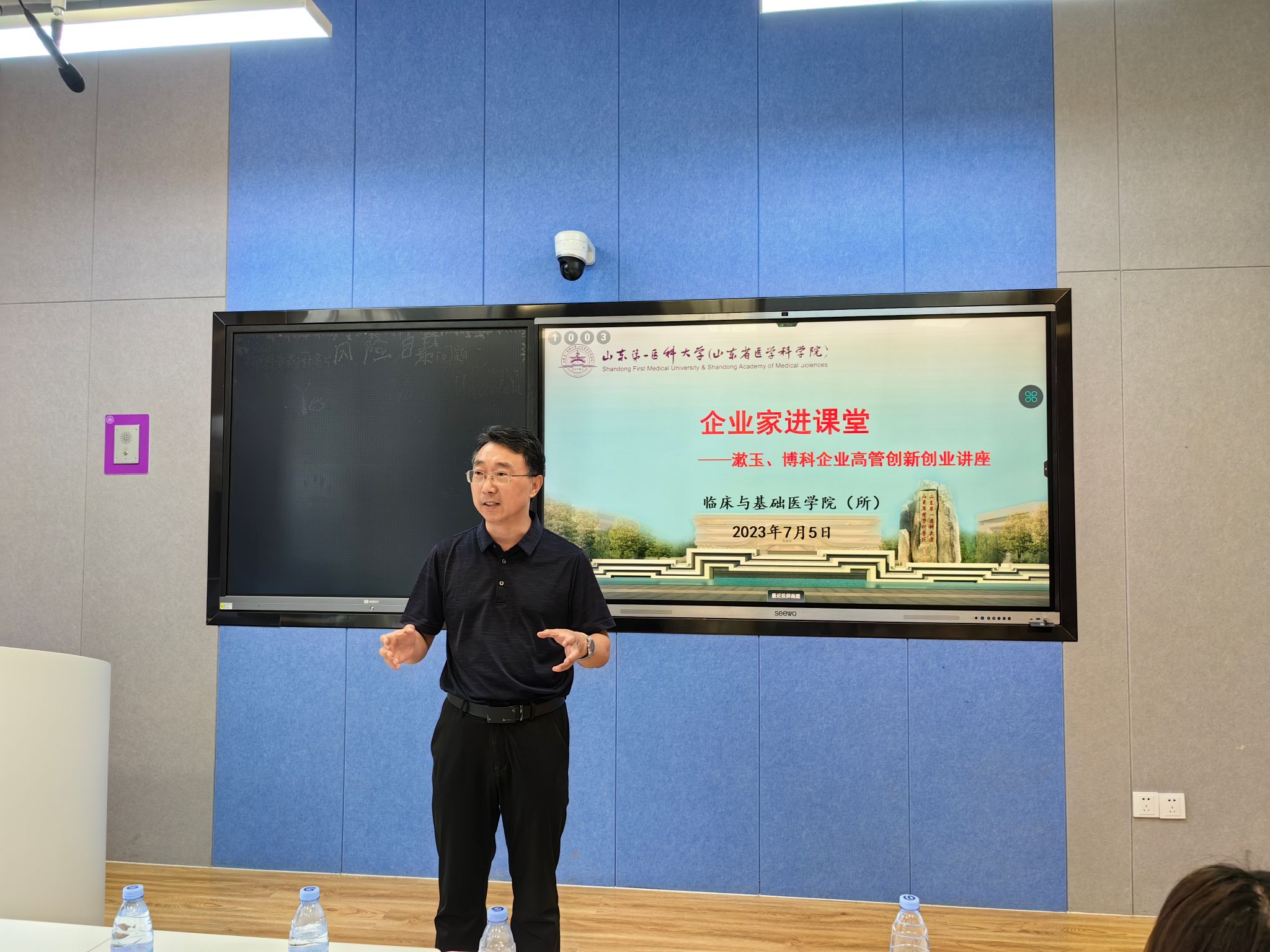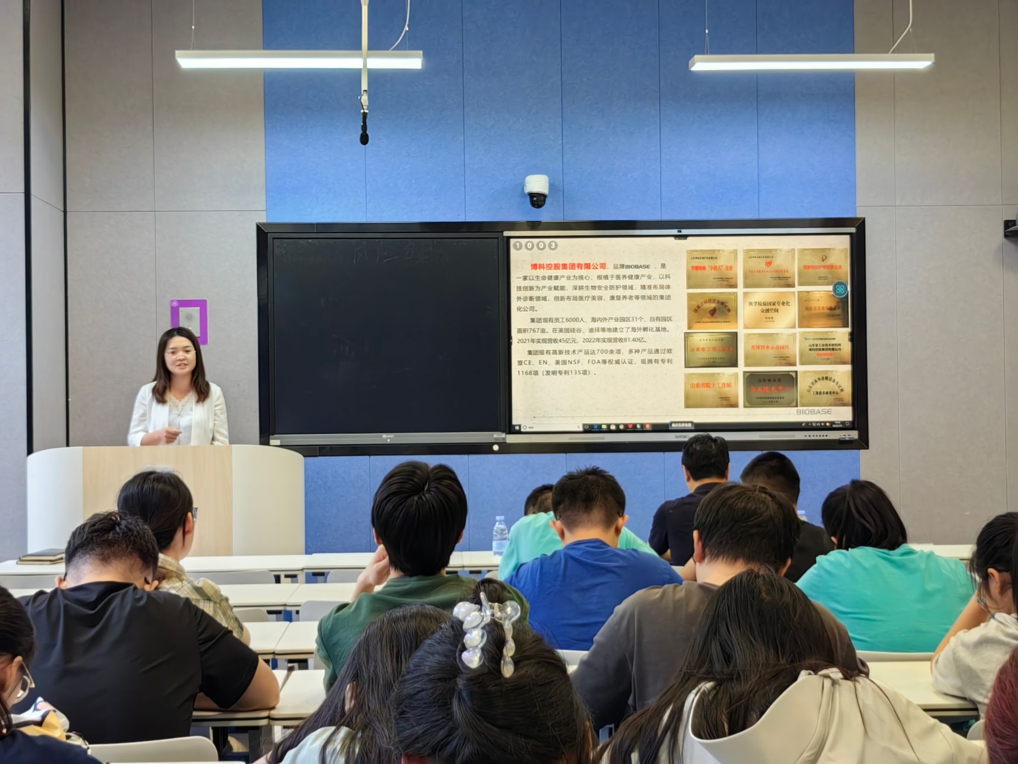 企业家进课堂活动中,漱玉健康产业研究院经理孙雯做了关于“健康产业人才应如何选择智力创业平台”的讲座,从应届老员工职业源点的自我能力评估、健康产业人才如何选择智力双创平台两个方面为师生进行了分享。博科控股集团有限公司知识产权部总经理包兴艳分享了题为“产学研用融合 促进创新发展”的讲座,从企业情况、企业产品、产业集群、与企业战略合作等方面进行了介绍。