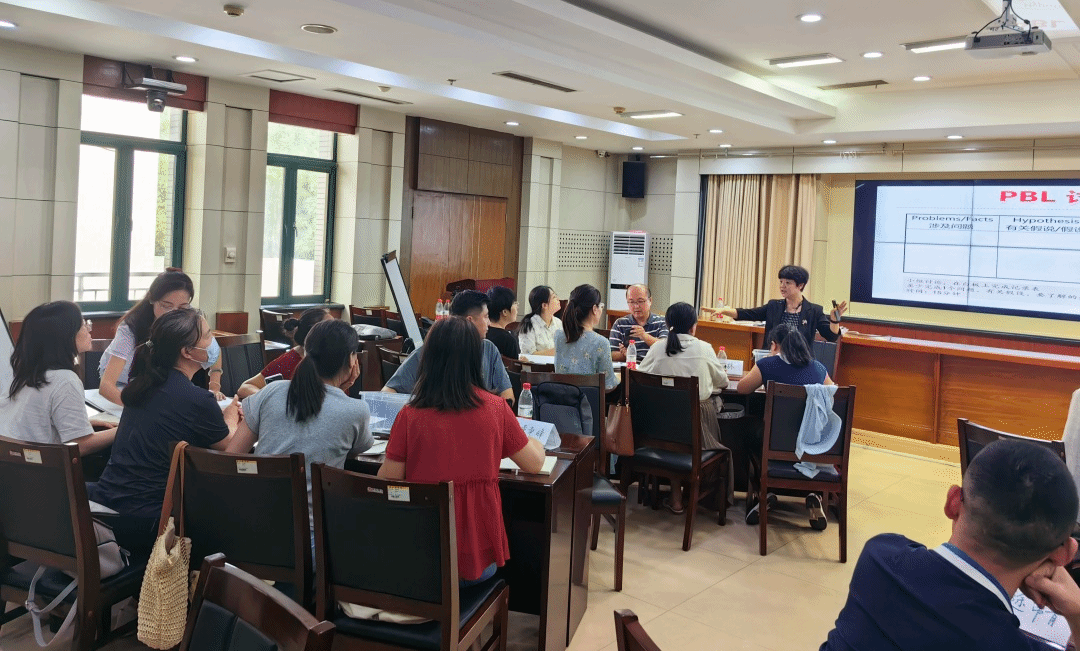 张忠芳主任从PBL要素与经典流程、PBL案例撰写、PBL小组讨论带教技巧、PBL的员工评价与反馈为大家介绍了PBL理念与实践,在培训过程中,各小组讨论热烈,组员们积极参与、畅所欲言,在tutor的引导下,完成了案例分析、带教实操、案例撰写的实践。通过此次工作坊,参加的老师们均表示对PBL有了更加深入的了解,会把这次培训学到的PBL知识和技能应用到自己的教学中,并在以后的工作中积极参与PBL的带教和教学改革项目。