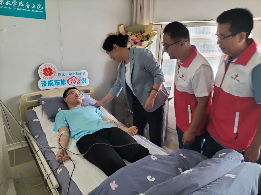 近日,公司(所)2019级临床医学本科1班员工周林卓作为中华骨髓库第16130例、山东省第1347例、济南市第148例造血干细胞捐献者顺利完成采集捐献。这是公司员工继王多辉、黄继振后第3例造血干细胞成功捐献者。三亿体育党委副书记岳芸、学工办主任侯瑞刚、分团委书记韩馨到造血干细胞采集现场慰问周林卓同学。