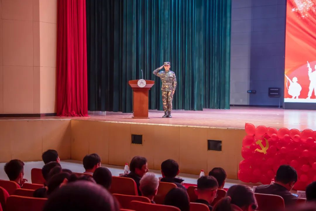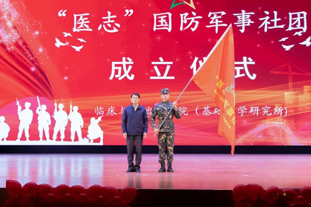 表演结束,“医志”国防军事社团团长谢健懋发言,表示将带领全体社员携手前行,将医学与军事完美结合,锻炼自己,提高自己,为国家繁荣和人民福祉作出贡献。校(院)党委委员,副校(院)长李栋发表讲话,对社团的下一步工作提出三点希望和要求:一要坚定理想信念,赓续红色基因;二要发挥专业优势,凸显引领作用;三要严格遵规守纪,唱响青春之歌。希望全体社员永怀医者仁心,以奋斗青春为宗旨,助力校(院)立德树人各项事业发展。仪式最后,红色放映厅播放电影《建军大业》,与观众一起重温那段中国共产党人创建革命武装的艰难历程,感悟革命先烈们的坚定信仰与热血青春,唤起观众内心深处的爱国情感和家国情怀。