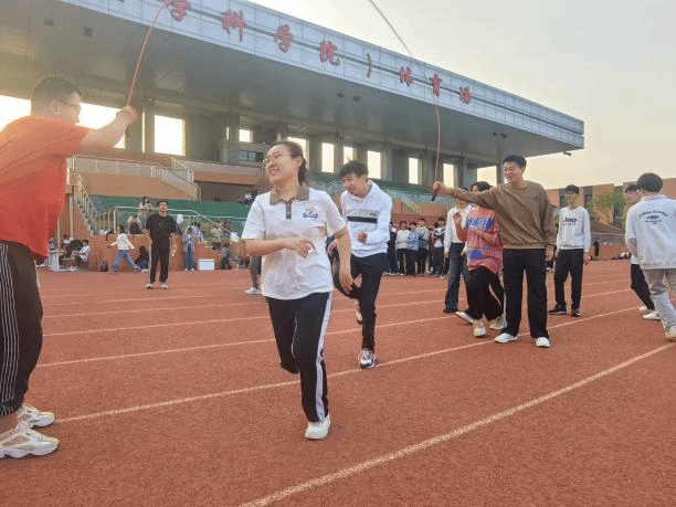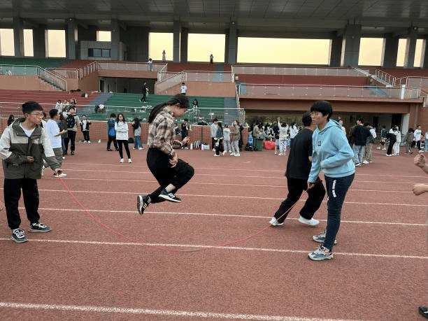 呐喊声、欢呼声,运动员们用激情点燃运动场。在欢乐的八字跳绳项目中,场上八位选手,把握节奏,奋力拼搏,相互赶超。场下观看的同学也被参赛选手的激情感染,为他们加油喝彩。