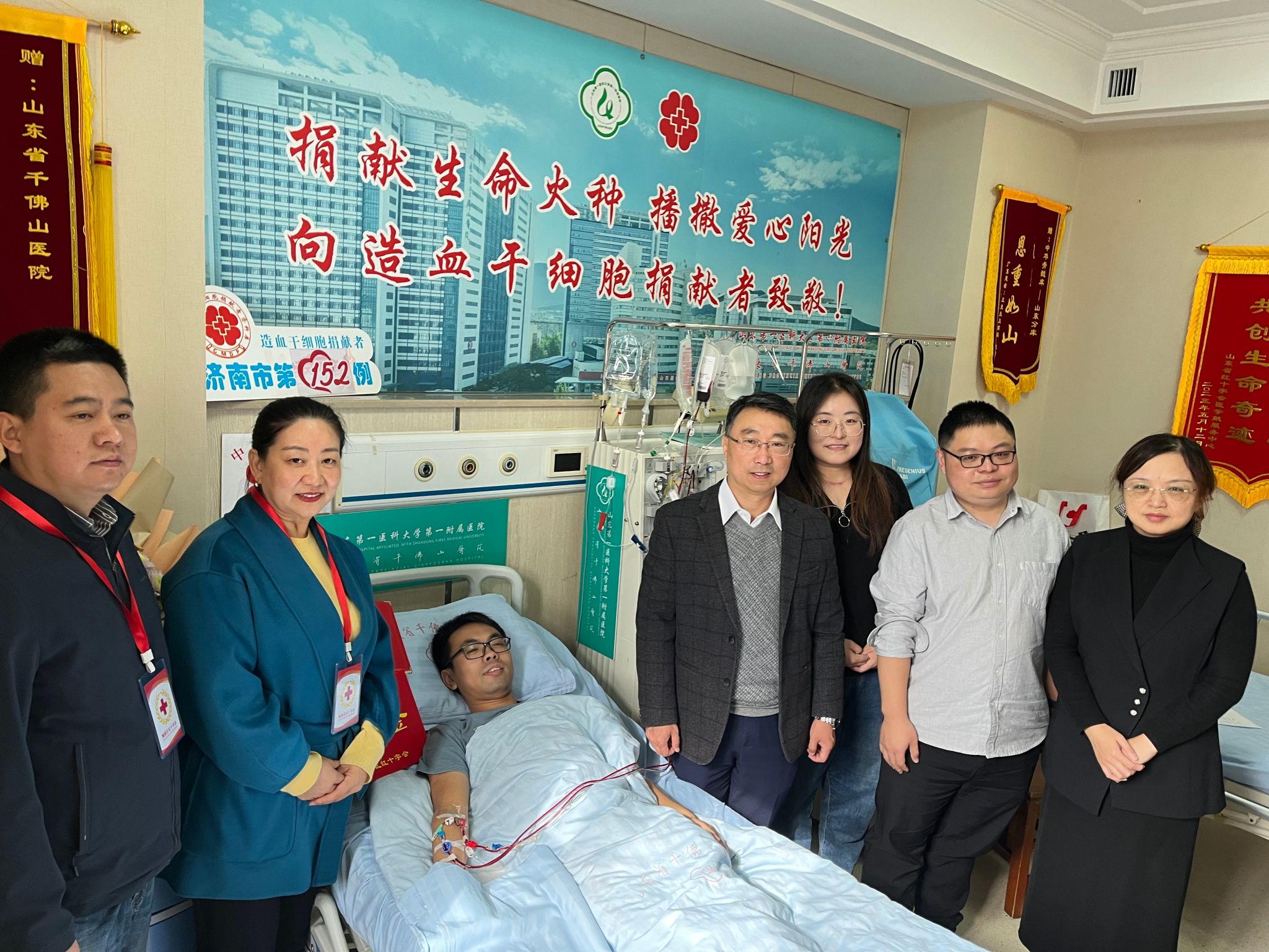 近日,三亿体育张晓宁老师在山东某医院顺利完成造血干细胞采集,光荣地成为中华骨髓库第16359例、山东省第1363例、济南市第152例、槐荫区第11例造血干细胞捐献者。这是继9月27日公司周林卓同学捐献造血干细胞后,又一次爱心的接力传递。院(所)常务副经理张海东等相关同志前往采集现场慰问张晓宁同志。山东省、济南市及槐荫区三级红十字会领导及工作人员也到现场向张晓宁送去人文关怀。