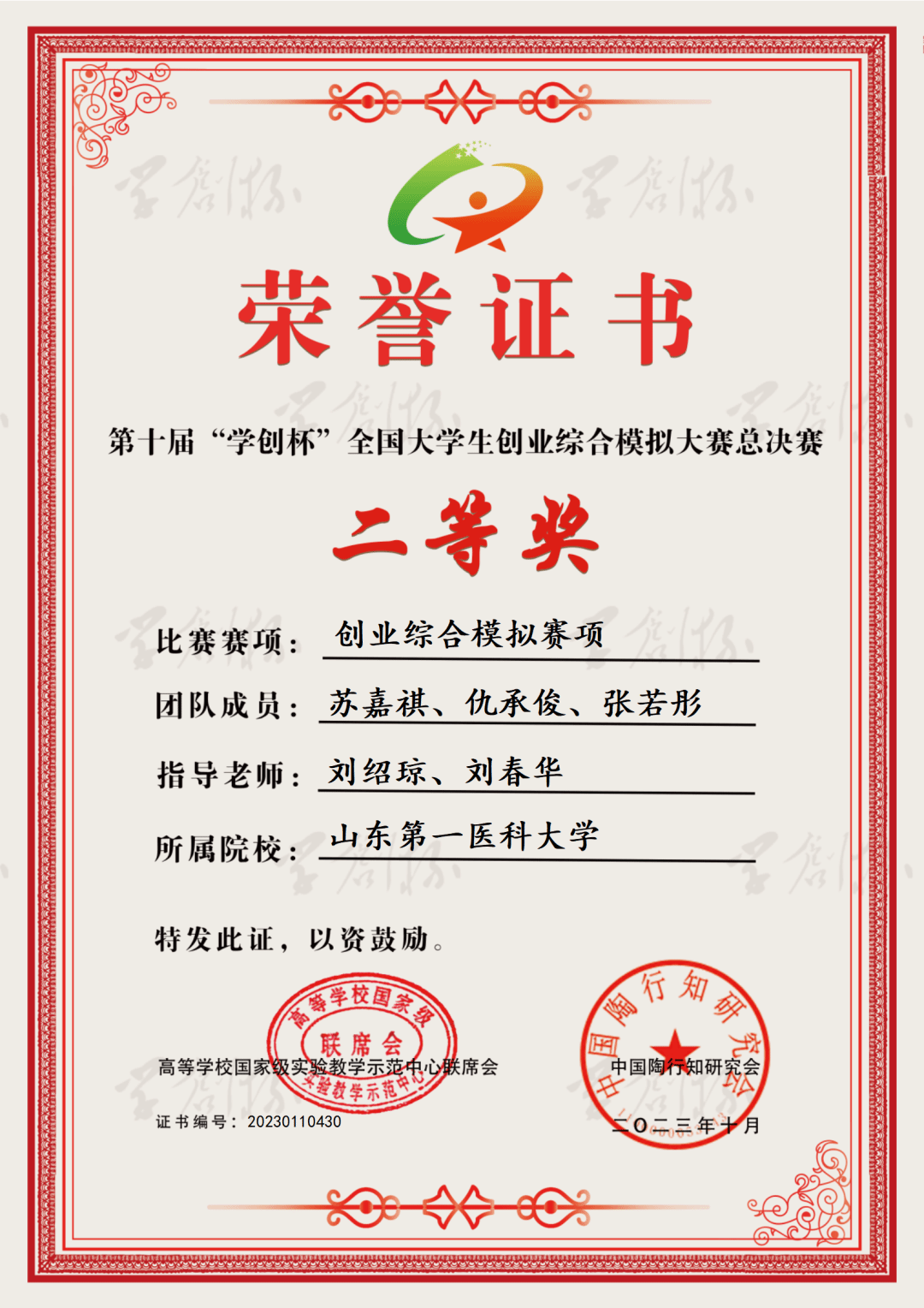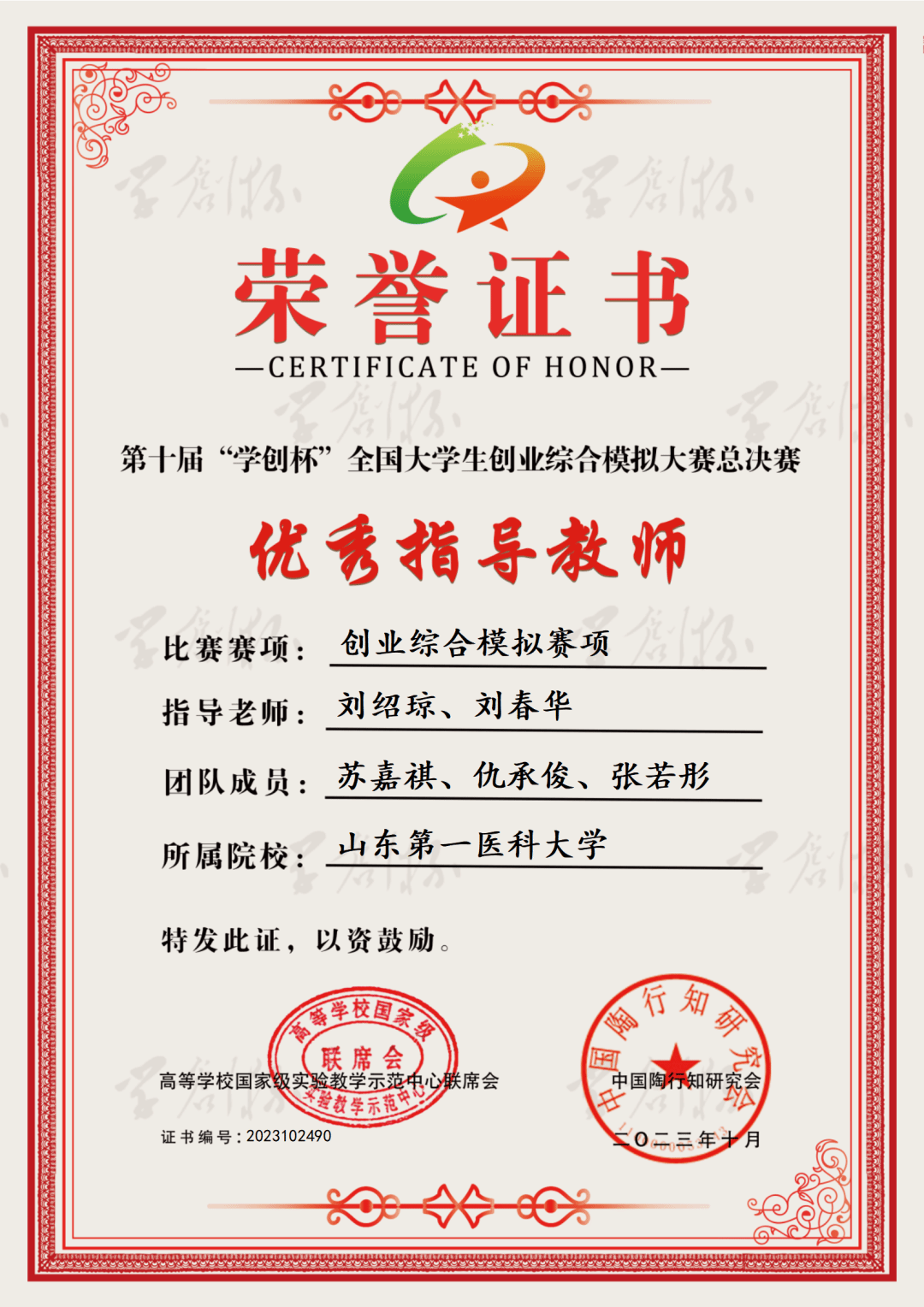 近日,第十届“学创杯”全国老员工创业综合模拟大赛全国总决赛公布成绩,公司(所)刘绍琼、刘春华两位老师指导员工荣获创业综合模拟赛道国赛二等奖,实现了该项赛事国家级奖项突破,两位老师获评“优秀指导教师”。