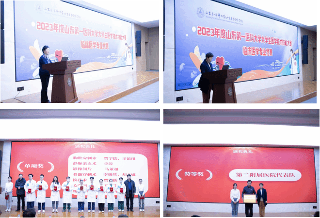 赛后进行了颁奖仪式暨闭幕式。总裁判长汪翼教授在闭幕式上对大赛进行了点评,她总结了本次大赛的特色和亮点,指出了选手们在技能操作方面的漏项和忽视之处,强调了医学的人文关怀特点,并对同学们提出了殷切的期望。医院管理与疾病控制部部长马洪玲致闭幕词,她指出:本次大赛的成功举办离不开各附属医院和教学医院的大力支持,这是一次学习的盛会,也是一个交流的平台。同学们要抓住这次难得的机会,把大赛的收获转化为今后学习和工作的动力。希望我们以本次大赛为契机,深入贯彻落实新时代的医学教育高质量发展理念,积极推进课程体系、教学方法、团队队伍和实践教学基地等方面的全面改革。