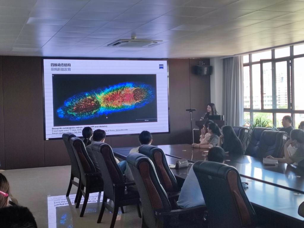 为了让本校师生更好地了解大型仪器设备的功能和使用规范,三亿体育公共科研平台于2022年6月7-8日,邀请卡尔蔡司的陈秀秀工程师对在校师生进行激光共聚焦显微镜的应用和使用培训。蔡司超高分辨激光共聚焦显微镜LSM880是最新的点扫描式激光共聚焦显微镜,对活细胞成像可以在长时程范围内更好地锁焦,避免样品脱焦带来的风险。同时Airyscan技术将高灵敏度、XYZ各维度高分辨率与快速图像采集速度集于一体,可以以更快的速度获得更多的结构信息。