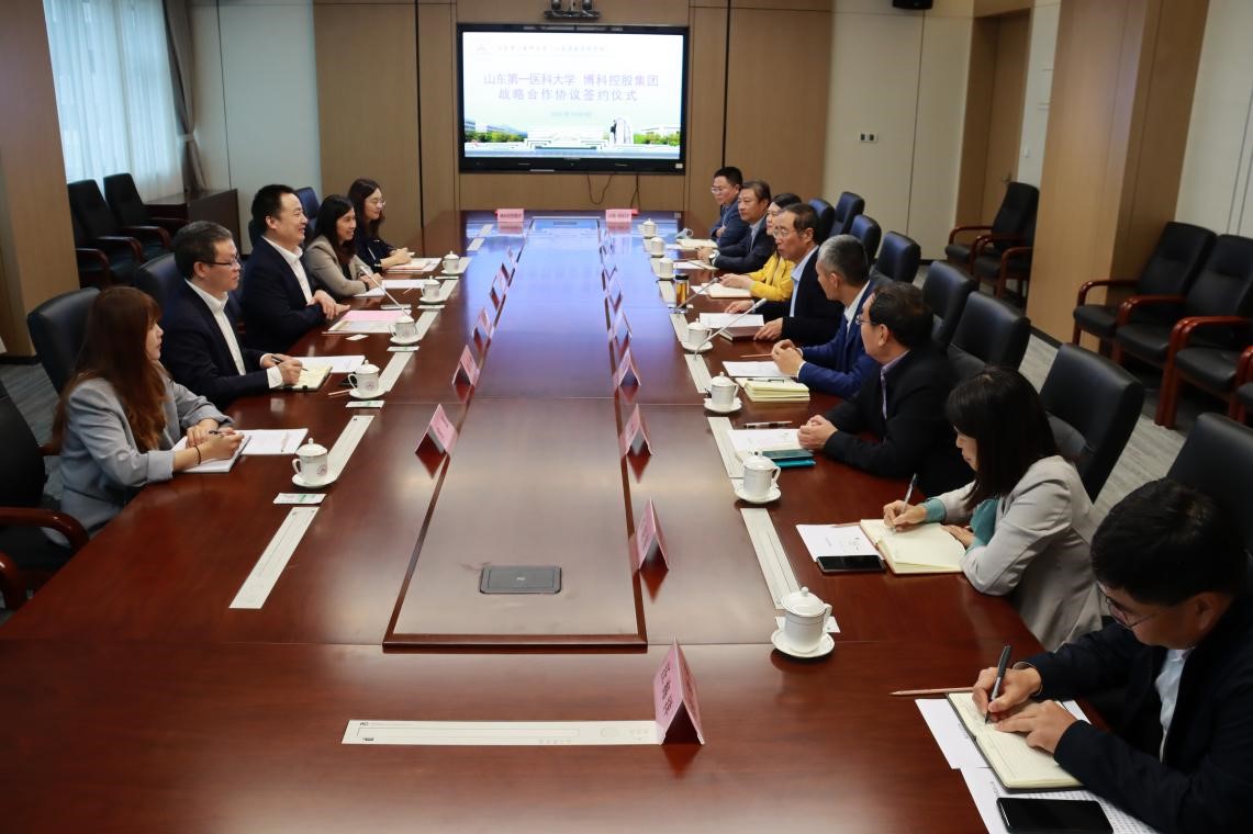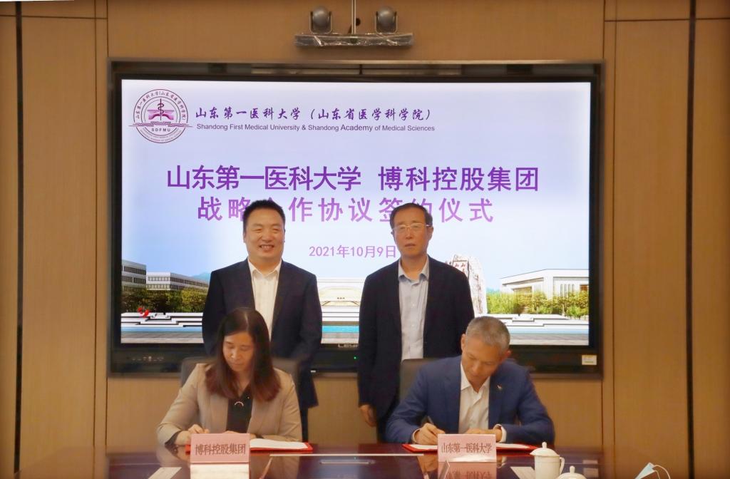 10月9日,三亿体育官网与博科控股集团有限公司在三亿体育官网济南主校区签署战略合作协议。校(院)党委书记韩金祥,党委委员、副校(院)长、基础医公司常务副经理马鲁豫,博科控股集团有限公司董事长甘宜梧,技术副总裁谢清华、袁文虎出席会议,会议由马鲁豫主持。