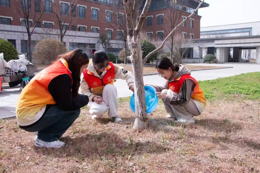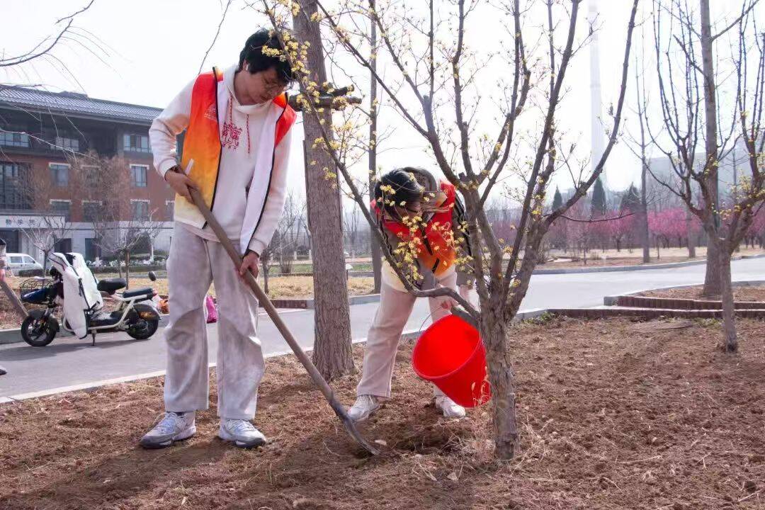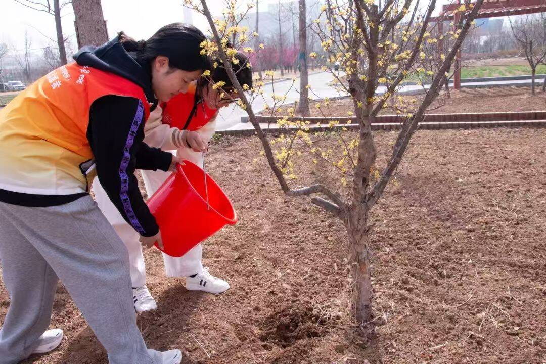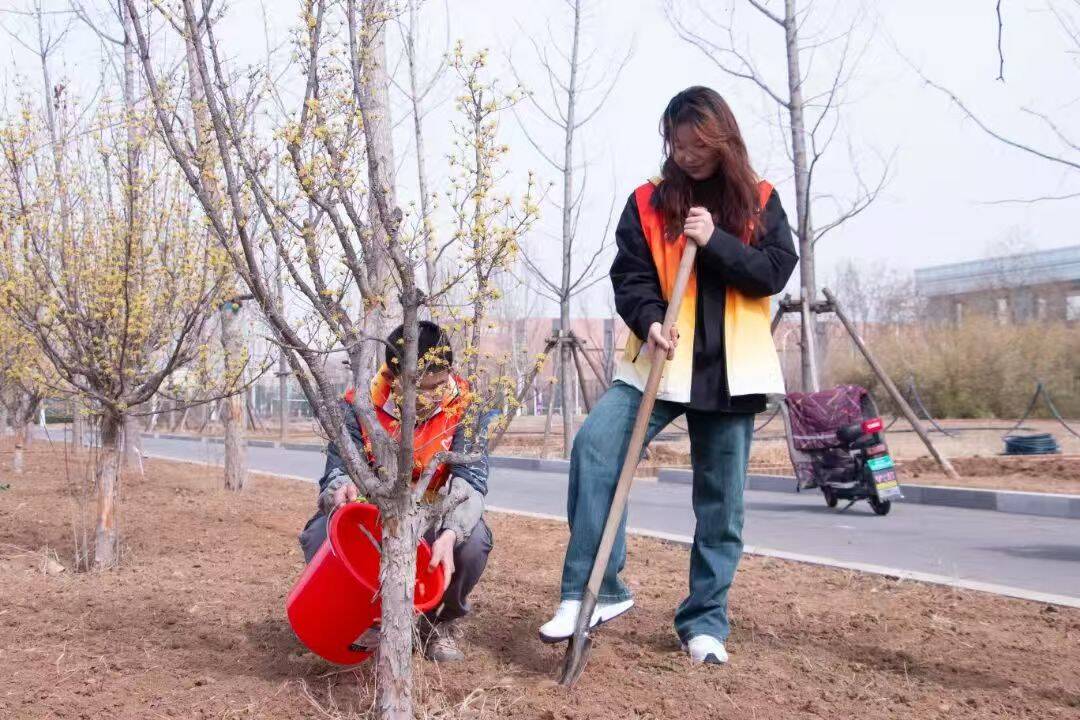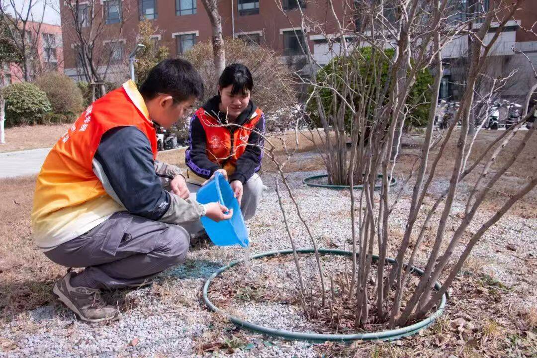 校园里,志愿者们给树苗浇水、松土,种下环保之心,筑起绿色“富矿”,播撒金色希望。每滴水、每抔土,都汇聚成对绿水青山的坚守,织就绿色中国锦缎。我们积极响应国家“互联网+全民义务植树”理念,发出倡议书,落实多种尽责方式,鼓励院(所)学子们积极参与全民义务植树网络平台线上的劳动尽责活动,共建共享美丽家园。