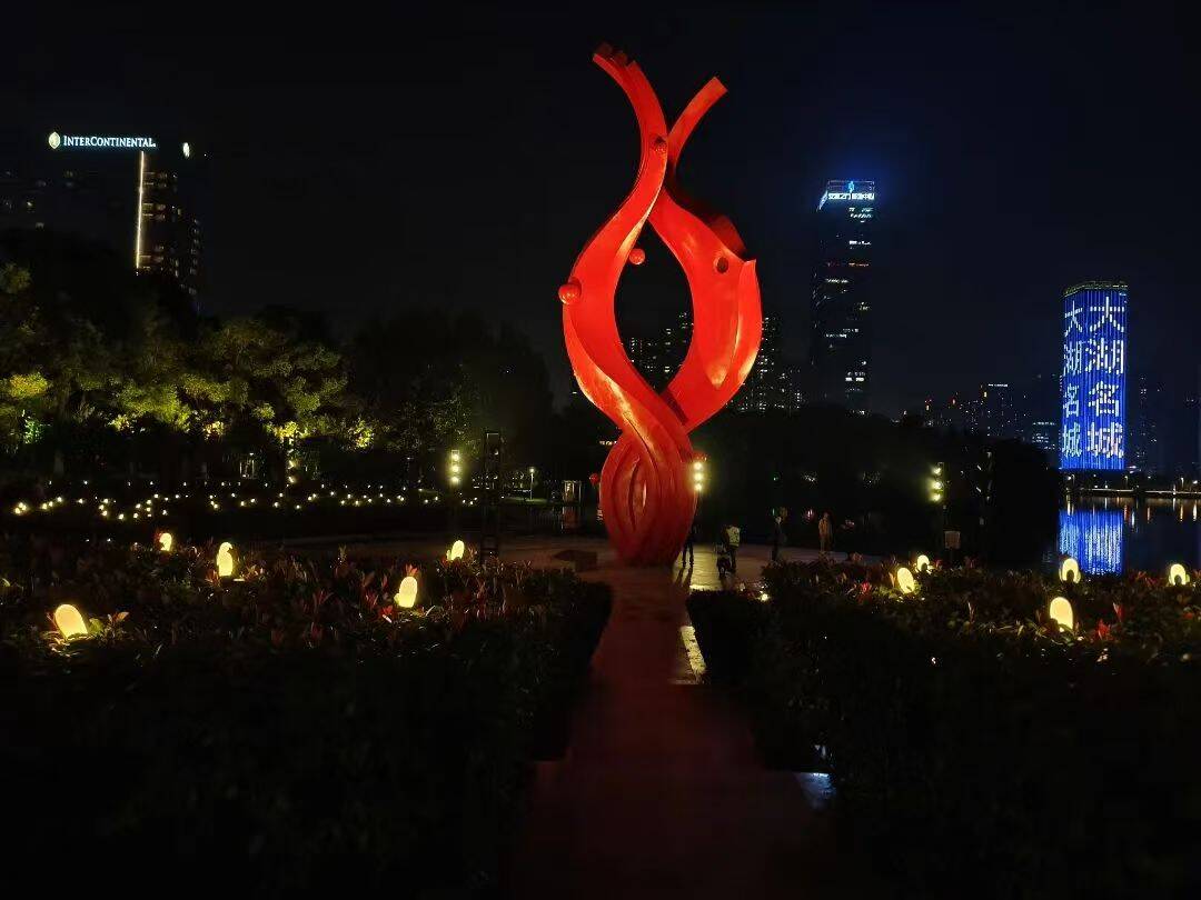 夜幕降临,天鹅湖被灯光点亮,宛如梦幻之境。