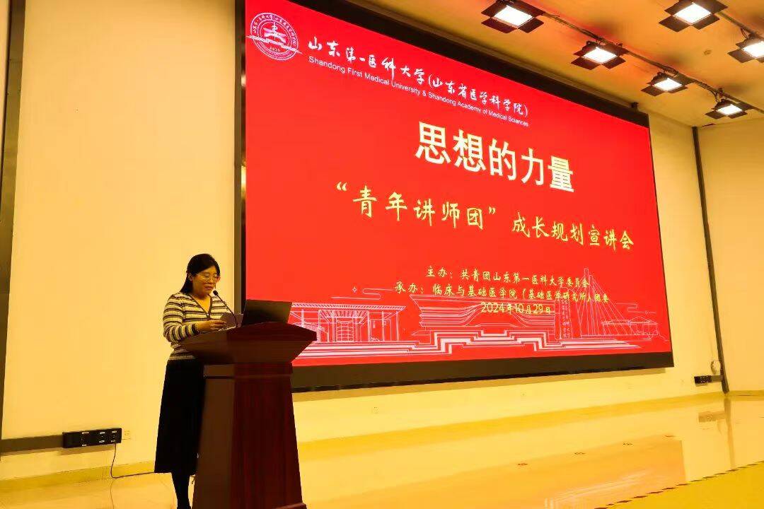 10月29日下午,由校(院)团委主办,公司(所)承办的“青年讲师团”成长规划专题宣讲会在公司(所)成功举办。第一附属医院重症学科副主任医师侯云峰、山东肿瘤医院泰山学者青年专家贺科文受邀宣讲。临床于基础医公司(所)辅导员老师张志涛及优秀员工代表参加活动,辅导员老师杜焕慧主持。