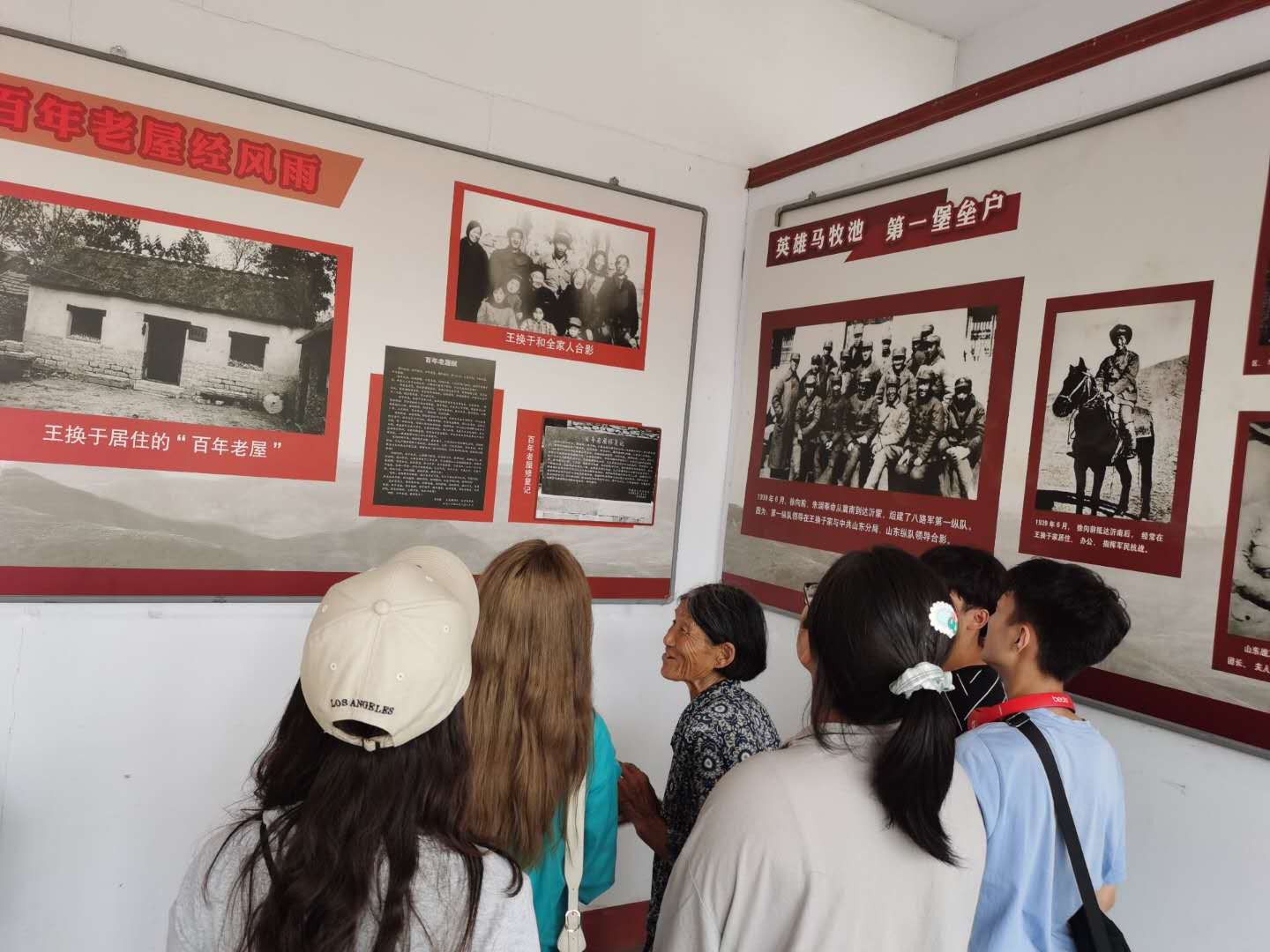 随后,社会实践小组跟随沈奶奶一同参观王换于故居,她耐心讲解王换于的生平以及革命事迹。在沂蒙母亲王换于的故居——百年老屋里,山东党政军领导机关在此指挥和领导着全山东的抗战,对抗战胜利做出巨大贡献,同时,在抗战史上,留下了无比辉煌的一页。百年老屋,不仅仅是沂蒙母亲王换于的故居,同时也是八路军第一纵队、中共山东分局、山东省战工会的旧址。社会实践小组进入展厅以后,被映入眼帘的大大小小的展板所吸引。在二十余块展板上,展示了沂蒙母亲王换于在艰苦的抗战岁月中积极地为山东党政军领导机关服务的各种场景。1939年秋创办战时托儿所,她又冒着生命危险保存下《山东省联合大会会刊》,并率全家拥军支前,成为老区人民支持抗战、甘于奉献的典范。
