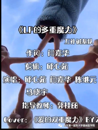 作为此次生化歌曲大赛的参赛选手之一,我从未想过自己能够站在这个平台上,看到自医学而来的不一样的美景;我也从未想过,原来我可以把书本上的一个个名词镶嵌曲中、唱出天际,唱给更多人听,让大家知道原来生化也是这般有趣,这般悦耳。