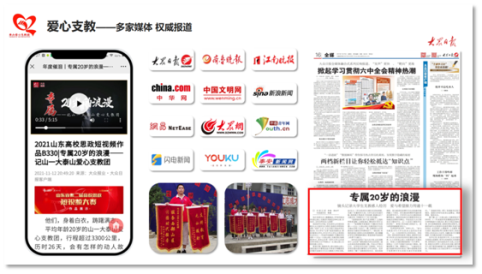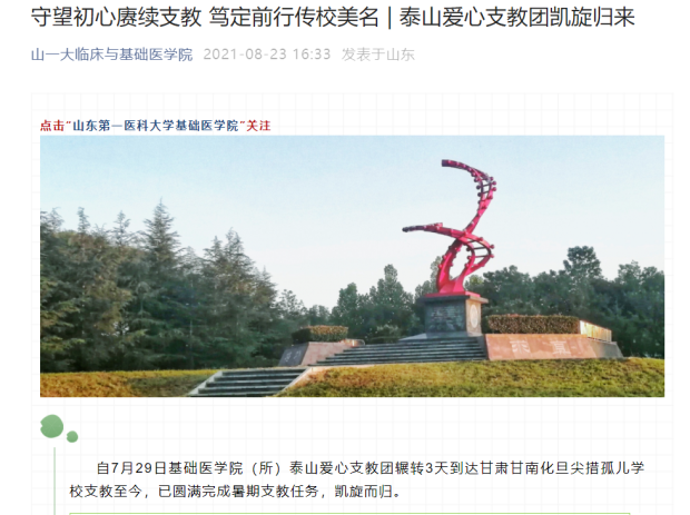 团支部同学热衷于社会实践活动,积极在服务奉献中实现自我价值。手持“担当”之笔为“青春”之画浓抹重彩,他们的身影时常出现在志愿献血、抗击新冠疫情、爱心义卖活动、爱心支教活动等志愿服务活动中,班级团支部书记作为优秀志愿者代表利用暑假奔赴千里之外的甘肃甘南化旦尖措孤儿公司开展支教为期一月的支教活动,并参加山东省第二届高校思政短视频大赛录制,作品《专属二十岁的浪漫——记山一大泰山爱心支教团》荣获员工组一等奖。支部同学15人获得“优秀志愿者”荣誉称号,大众日报、闪电新闻等官方媒体多次报道。