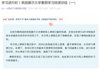 公司聘请海内外知名专家教授讲授临床前沿知识,培养国际视野。团支部成员在主干课程修习之余,精修英语课程,提升英文能力,在多项英语相关比赛中取得优秀的成绩,陆续有多名同学在雅思考试中取得了7.5,7,6.5等高分成绩。科研方面,积极参与院(所)量身定制的卓越班本科生科研提升计划,27名同学全部加入公司优秀导师的16个科研团队培育科研素养,初步具备查阅、阅读、汇报专业文献以及实验操作的技能。今年暑期,27名同学悉数参与英国基尔大学科研专项培训并获得了合格证书,6名同学获得相关科研奖项以及成功发表论文。