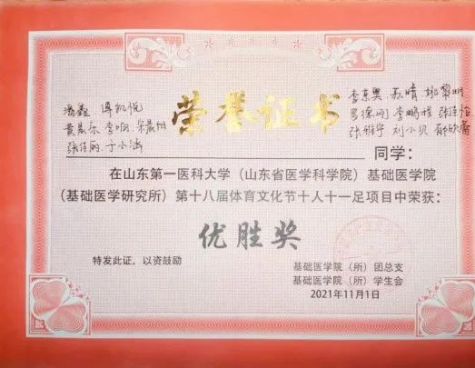 山东省三亿体育临床医学(卓越班)本科专业2019级1班团支部共有团员25人(班级共27人),其中党员6人,预备党员2人,入党积极分子16人。在校(院)团委及院(所)分团委的带领下,该团支部积极向优秀的团组织看齐,勤劳好学,团结友爱,踔厉奋发,勇于创新,追求卓越,在思想道德、学习成绩、科研提升、体育文化等各方面都取得了不凡的成绩。