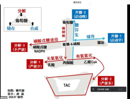 一个大分子,多个途径,随着赵老师循序渐进地讲解,一张糖代谢的大网逐渐铺展在我面前。单条糖代谢的途径是条条大路,关键酶是十字路口的闸门,在哪个节点产生ATP,又是在哪个节点实现底物水平磷酸化。随着赵老师带着我们一次次重复这些大分子的名字,我逐渐地跟它们熟悉起来,从陌生人到好朋友,我也跟着它们的脚步,让它们带领我们交更多的“朋友”。