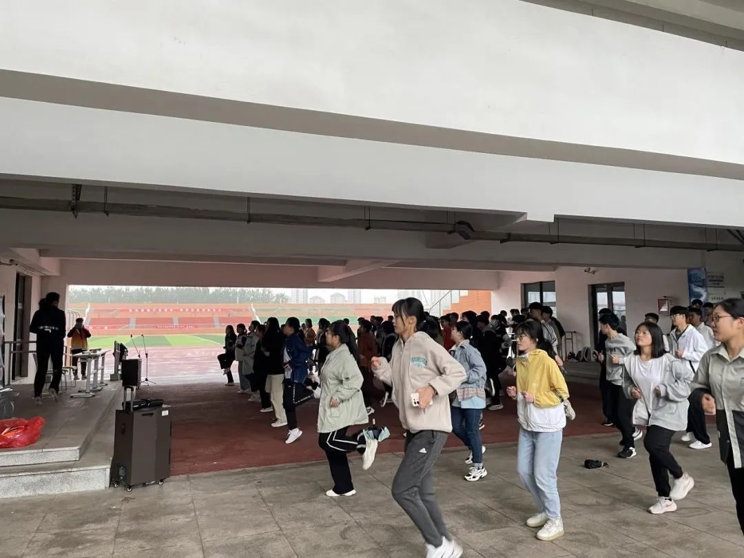 常鹏丽老师详细讲解了跑步运动的特点、规律及运动注意事项,并带领同学们做跑前热身运动,指导同学们科学跑步、健身。