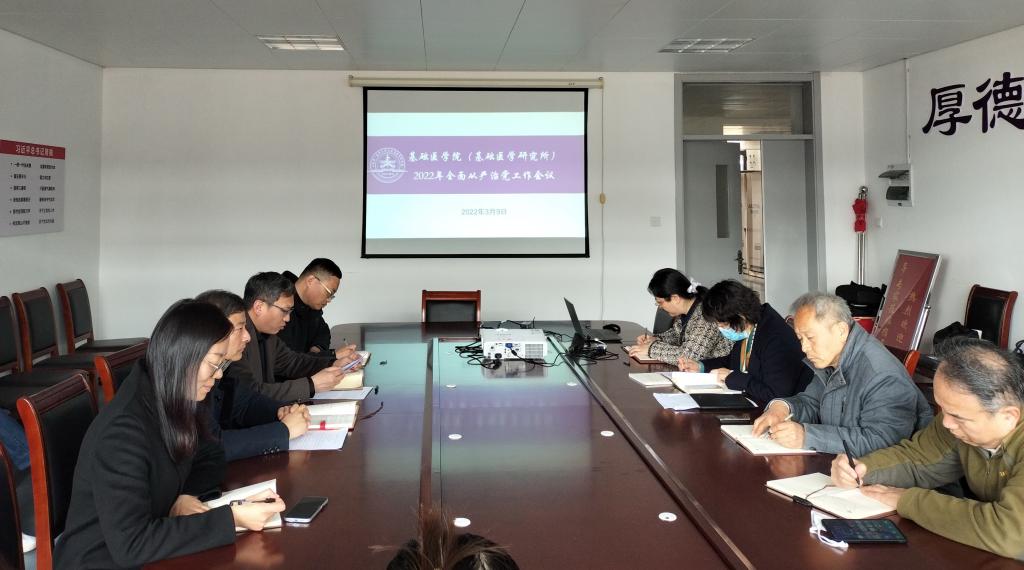 3月9日,基础医公司(基础医学研究所)召开2022年全面从严治党工作会议。院(所)党委书记孟庆建主持会议并讲话,公司(所)党委委员及各党支部书记、科级管理人员参加会议。