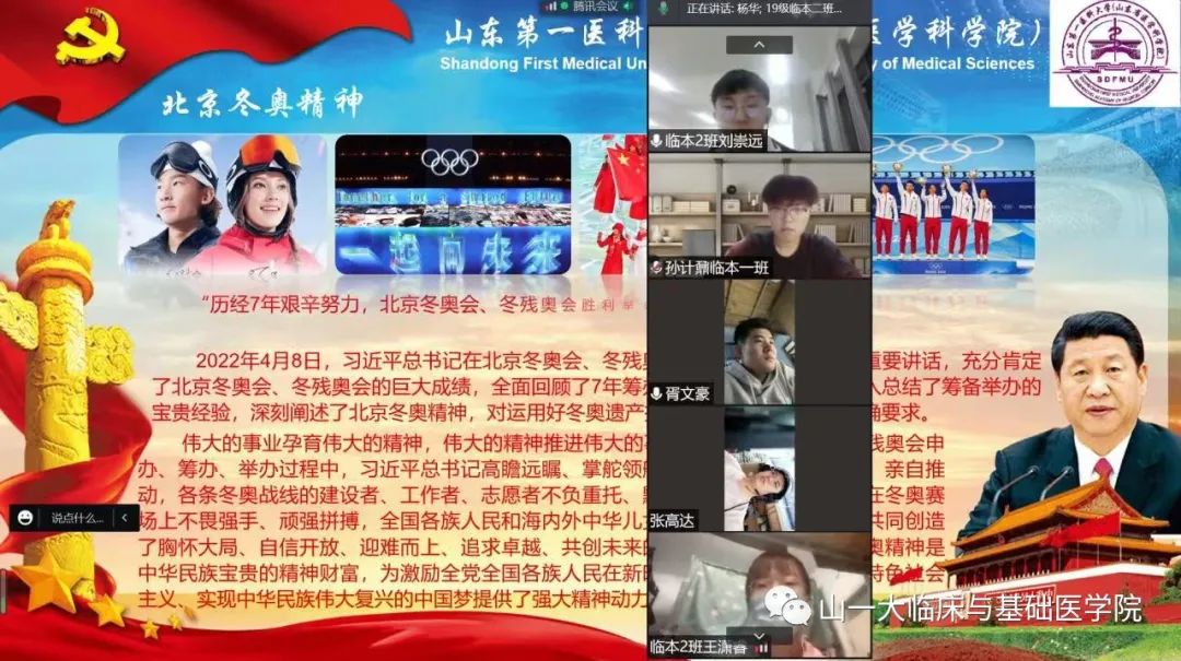活动由“疫情防控、载人航天、北京冬奥”三部分组成。首先党支部书记杨华从免疫学专业角度解读当前面对新冠病毒我们为什么不能“躺平”,使与会员工明白我国目前疫情防控政策和采取的措施,是党和政府基于我国国情做出的最正确选择,号召员工在做好个人防护的同时自觉遵守各项规定,为疫情防控做出自己的贡献。然后与会党员教师与员工共同观看《中国载人航天之路》,关注神舟十三号宇航员顺利返回祖国,领悟中国航天人特别能吃苦、特别能战斗、特别能攻关、特别能奉献的载人航天精神,激励员工要发扬载人航天精神,在基础和临床研究领域大胆开拓和探索。最后全体人员共同学习习近平总书记在北京冬奥会总结表彰大会上发表的重要讲话,感悟胸怀大局、自信开放、迎难而上、追求卓越、共创未来的北京冬奥精神,这不仅是习近平总书记对青年的殷切期望,也是中华民族宝贵的精神财富。