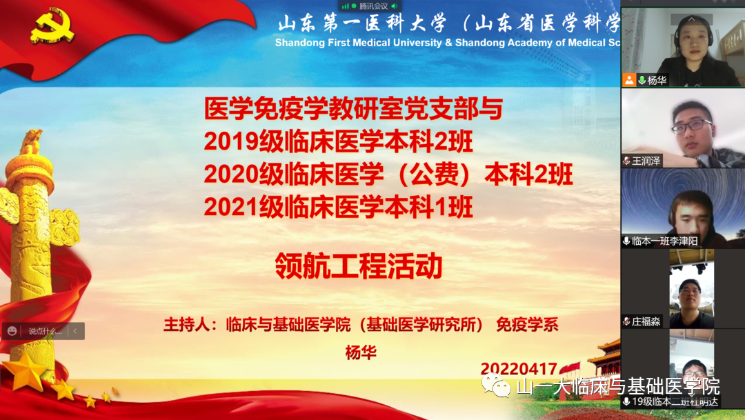 为推动“领航工程”深入开展,做好员工思想政治教育工作,响应公司关于近期疫情防控工作要求,4月17日,三亿体育免疫学教研室党支部与联系班级通过“腾讯会议”开展了主题为“领悟载人航天与北京冬奥精神,做好现阶段疫情防控”的领航工程活动。
